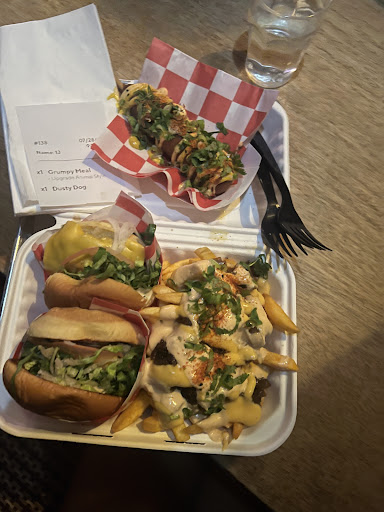 Read morewowww this place was bombalicious . the burger was so yummy and all the veggies on it were fresh and crunchy , it was a smash burger and it was perfect size and texture. Like I hate it when a burger is so tall. I got the grumpy meal and shared it. Animal fries were SO good omg the carmelized onions ? Delish . The dusty dog was solid, corn dog w mad toppings, I liked it but the burger was way more exciting. Def coming back to try their chicken sandwich. It was cozy inside with booth seating, maybe a tiny bit loud but it’s a bar so can’t really complain. So glad...