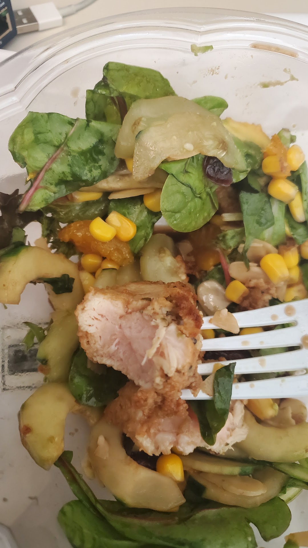 GRubhub gave me a refund and they offered to make a new salad but I don't trust them. I am not sure why the mamager hired inexperienced people in the kitchen who don't know how to cook. She also said she can't fire him because he is sick also that another cool usually handles the chicken.