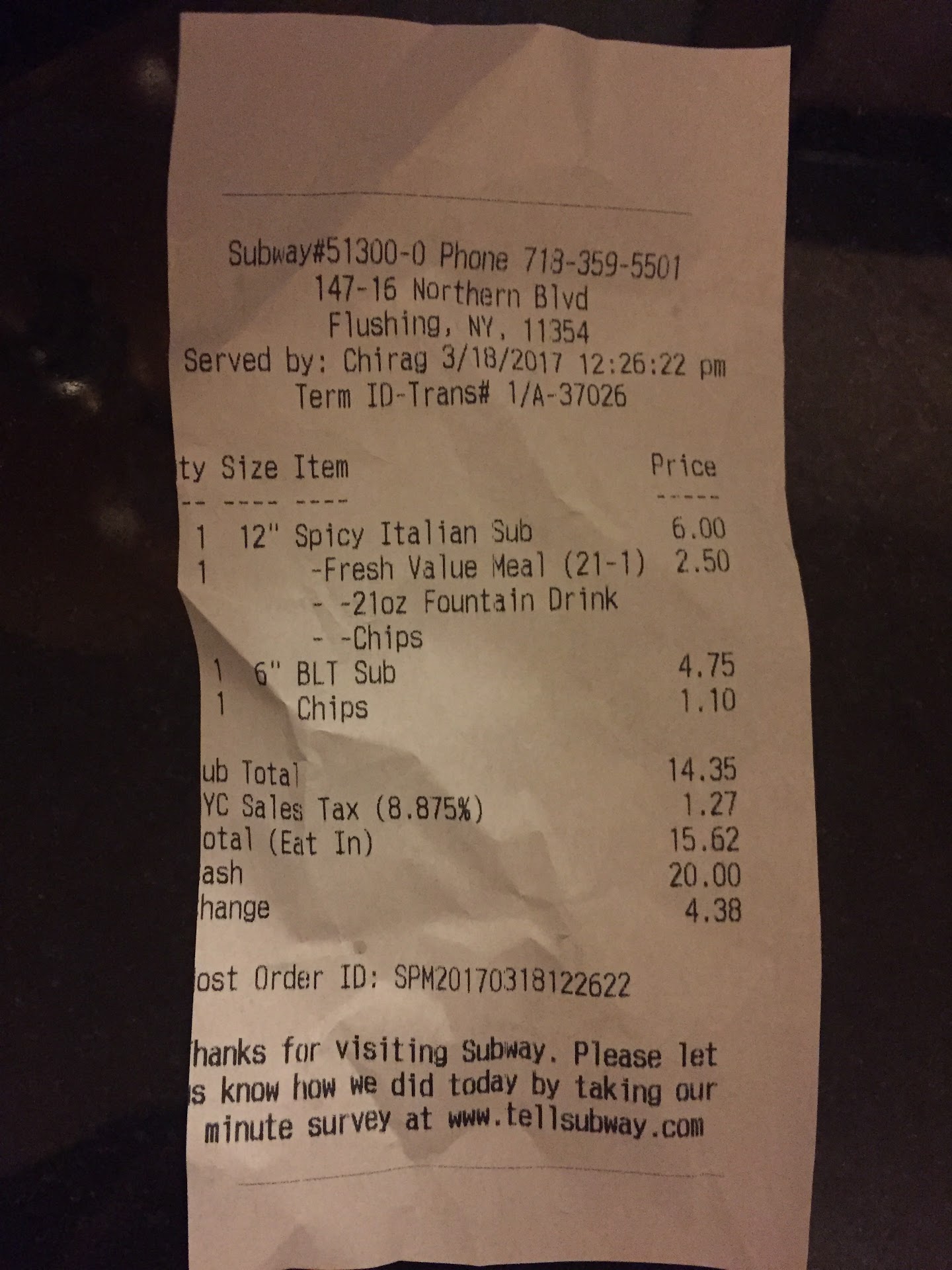 Read moreI was stuck behind my desk since 8am and didn't get a bite to eat the whole day. I had a Subway gift card and decided to try to use up the monies for lunch. I walked in and this guy with one off colored eye asked me what I wanted. I went for the $5 tuna jalapeno foot long and chose my bread. The guy kept on asking me if I wanted "fresh tomatoes". I was wondering as opposed to what "rotten tomatoes"?! I was a little puzzled but made believe he didn't say that. They are quite generous with the fillings for my sandwich. No complaints. Took the sandwich back to eat. My friend saw me munching on my sandwich and asked me they wanted one too. I went back to pick up a sandwich for my friend and was determined to use up the monies on the card. I told the sandwich artist what I wanted, and again he asked me if I wanted "fresh tomatoes". Still baffled and still trying to pretend he didn't ask me that.