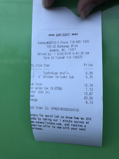 Not much of a review writer but with the terrible service and rising price of goods in nyc, consumers need to start standing up for themselves. Came to this subway during my lunch hour and ordered a sandwich. The guy preparing my sandwich was simultaneously preparing another sandwich for an online order. After my sandwich was prepped and wrapped, he continues to work on this online order instead of checking me out. Mind you, no one was there to pick up the order just yet. I asked him if he can check me out since my lunch hour is limited. He passive aggressively said to me that this order was placed before mines. Well then, if we are using that logic, then why did you cash the customer that came AFTER me because all she was purchasing was a bag of chips? I mean, if you’re really going by who comes first then that customer should’ve been told to wait just as how I was told that the online order was placed before mines. Your response was uncalled for. Instead of taking the 30 seconds to respond to me, you could’ve used it to check me out very quickly. I get that fast food workers are underpaid and overworked but that’s a struggle that you as a fast food worker need to fight; not me as the...
