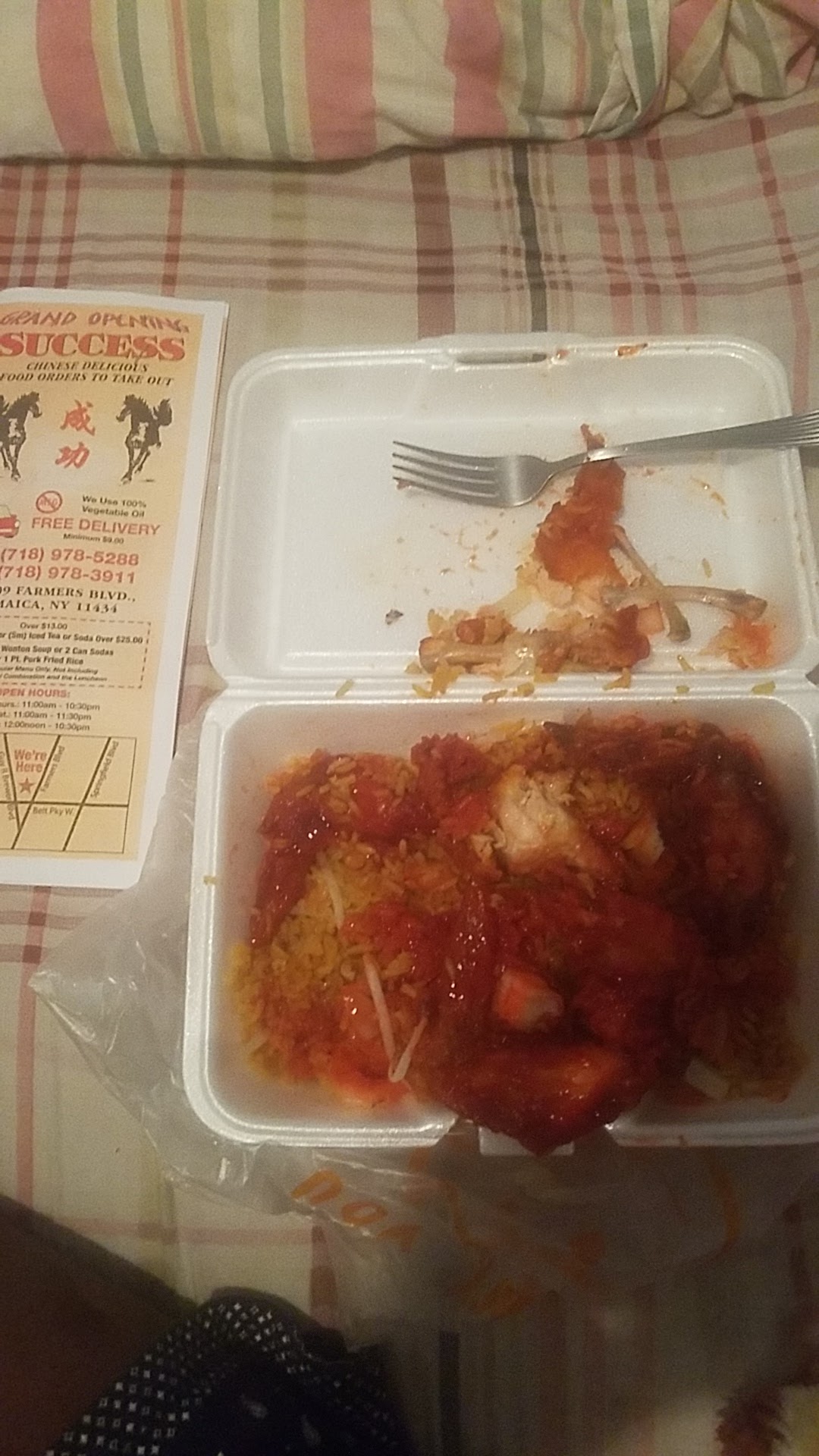 Save your money. DISGUSTING. Thatâs all I need to say. Context: I ordered general tso chicken w/ fried rice, chicken and broccoli w/ fried rice, and honey wings. The texture and flavor of the general tso chicken was not sweet AT ALL, the taste was very displeasing, AND the chicken was soggy. The rice had a weird nasty after taste. After just that one dish I didnât need to taste the rest to know that ALL OF IT WOULD BE TRASH. I called to see if she could take what I didnât touch back for a refund. She said sheâs never had a complaint and that I might have never had general Tso chicken so I donât know that itâs supposed to taste the way she made it. I know Itâs not supposed to be nasty. Save your money cause they wonât...