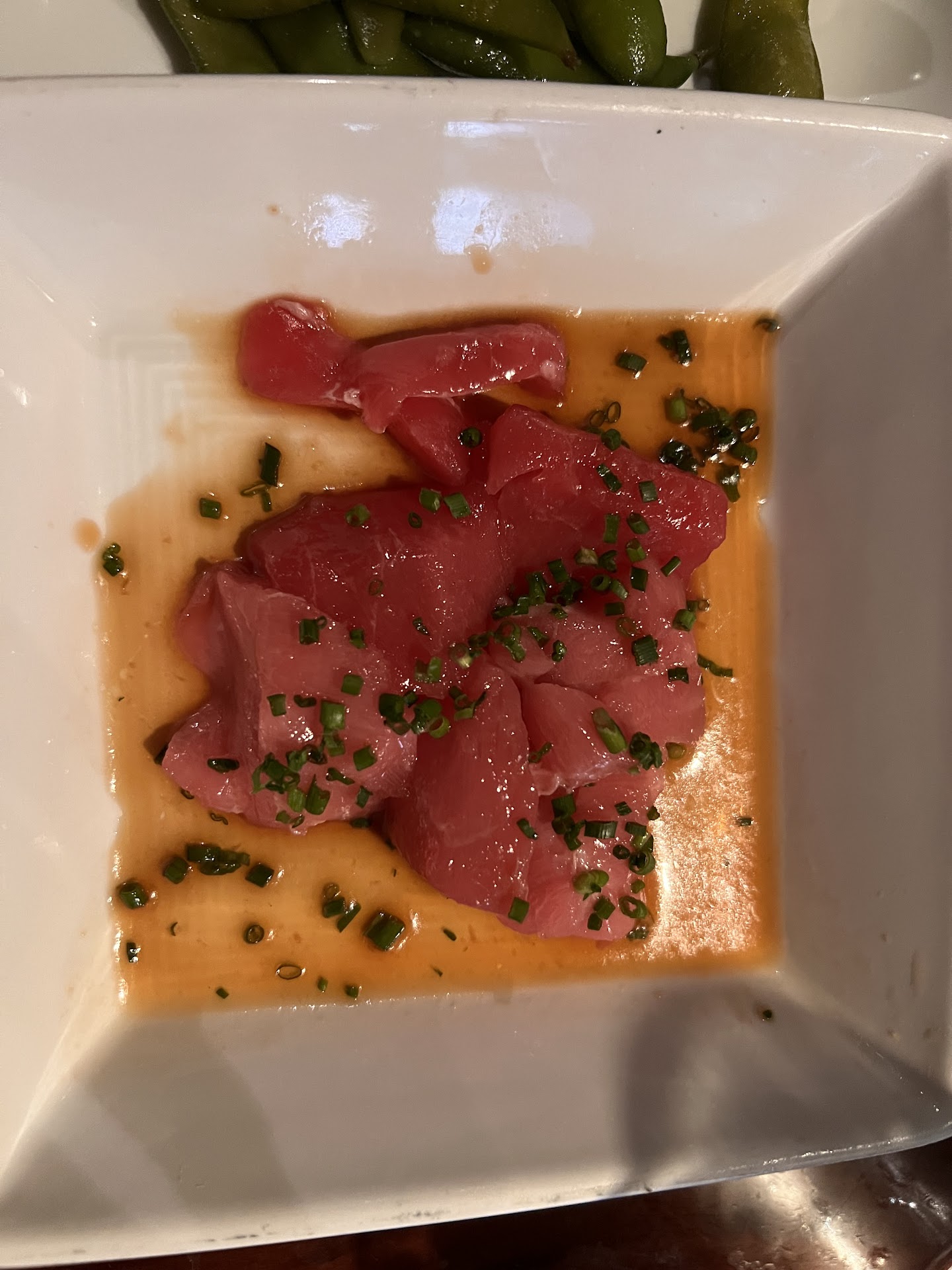 The edamame was disappointing. It was $10 for what looked like 10 pieces, and it was cold. I've never had cold edamame... it's always hot at any place I go to. Maybe it's just their thing? Dont know. But I wont complain too much about it.