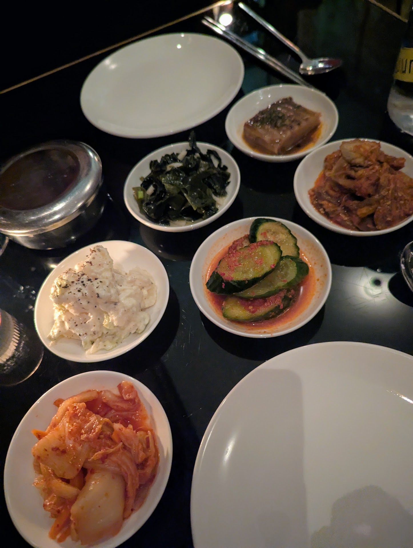 Read moreOk, first you have to get over that you order and pay for Banchan, lol. But this is their specialty, housemade, delicious Banchan. For 25 dollars you get rice (which is delicious, I even asked what rice they use) and an array of Banchan, which included potato salad, mung bean jelly square, marinated mushrooms, kimchi. We split one order of Banchan and ordered a bunch of other stuff. They change up the Banchan regularly. My only comment would be, since I am paying for it, all the Banchan we had that evening were veggie based. Other reviews etc, they do do Banchan that have meat or seafood. Would love to have had one that satisfied the carnivore in me. We also had the crab and chicken mandu which was my favorite. The Bosaam, braised pork belly that came with napa cabbage, and sauces to dip and wrap, yummy. Chigae made with mushrooms was hot and flavor packed. We also ordered the handroll, I think next time I would get the Hwe, fish salad. Also had dessert a butter mochi, solid but did not wow me. I might skip that and wander out for ice cream somewhere else. The place is tiny, maybe 4-5 tables? and a counter. It's really cozy, cute and so well done. Excellent playlist. The whole experience was greater than the sum of it's parts and absolutely wonderful, I would...