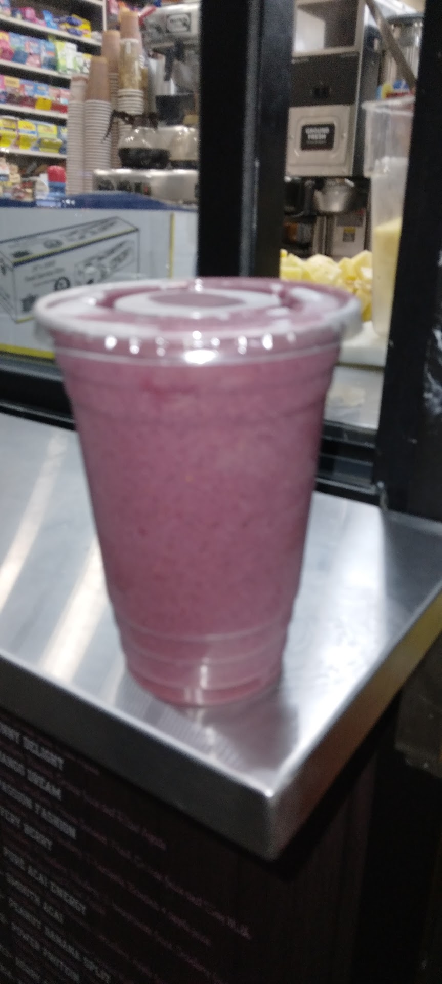 Read moreI just got a smoothie. How can you go wrong with a smoothie? I have no idea. This smoothie taste so disgusting: mango, pineapple,apple juice and banana. I think the mango is not fully ripe or pineapple bc I am drinking a sour drink. It smells rancid. I really want to take it back but now my stomach hurts. This is the most unrefreshing smoothie I have ever had- and that is my fruit combo I usually always go with. Do not get smoothies from this location! It's not natural either- my apple juice was just Motts brand poured into...