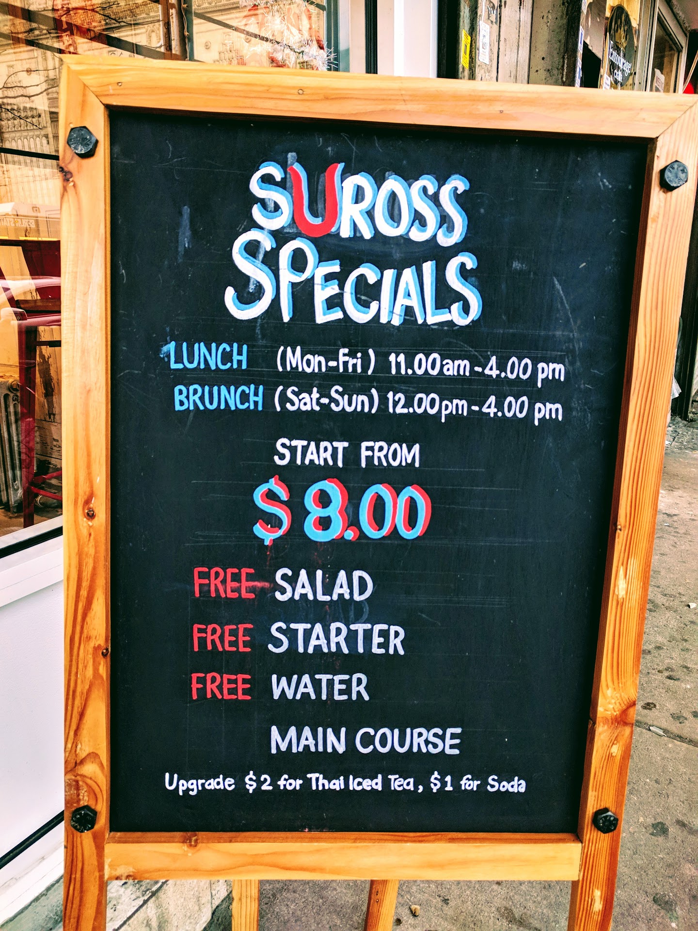 They have some enticing lunch special menu at great price, and our luck would have it, they offer it for brunch too! They come with complimentary side salad, a choice of starter, and a water. The water can be upgraded to Thai Iced Tea or Soda for additional cost. We got the Thai Iced Tea (additional $2 for upgrade from water). It was really good, kind of nutty, and very sweet as expected.