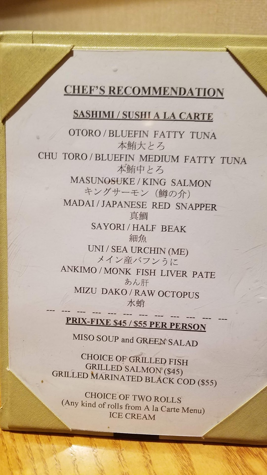 So the sushi/sashimi is good, but then there was the bill, which didn't line up with what the menu said.
