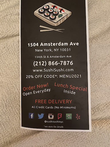 Read moreI just had a very surprising experience with Sushi Sushi. I placed an order with Sushi Sushi and used their 20% Off Code. It was about 10:30 pm and I got a call about 20 minutes later and an employee said I couldn't use the discount code because someone at my address had already used it (my roommate)