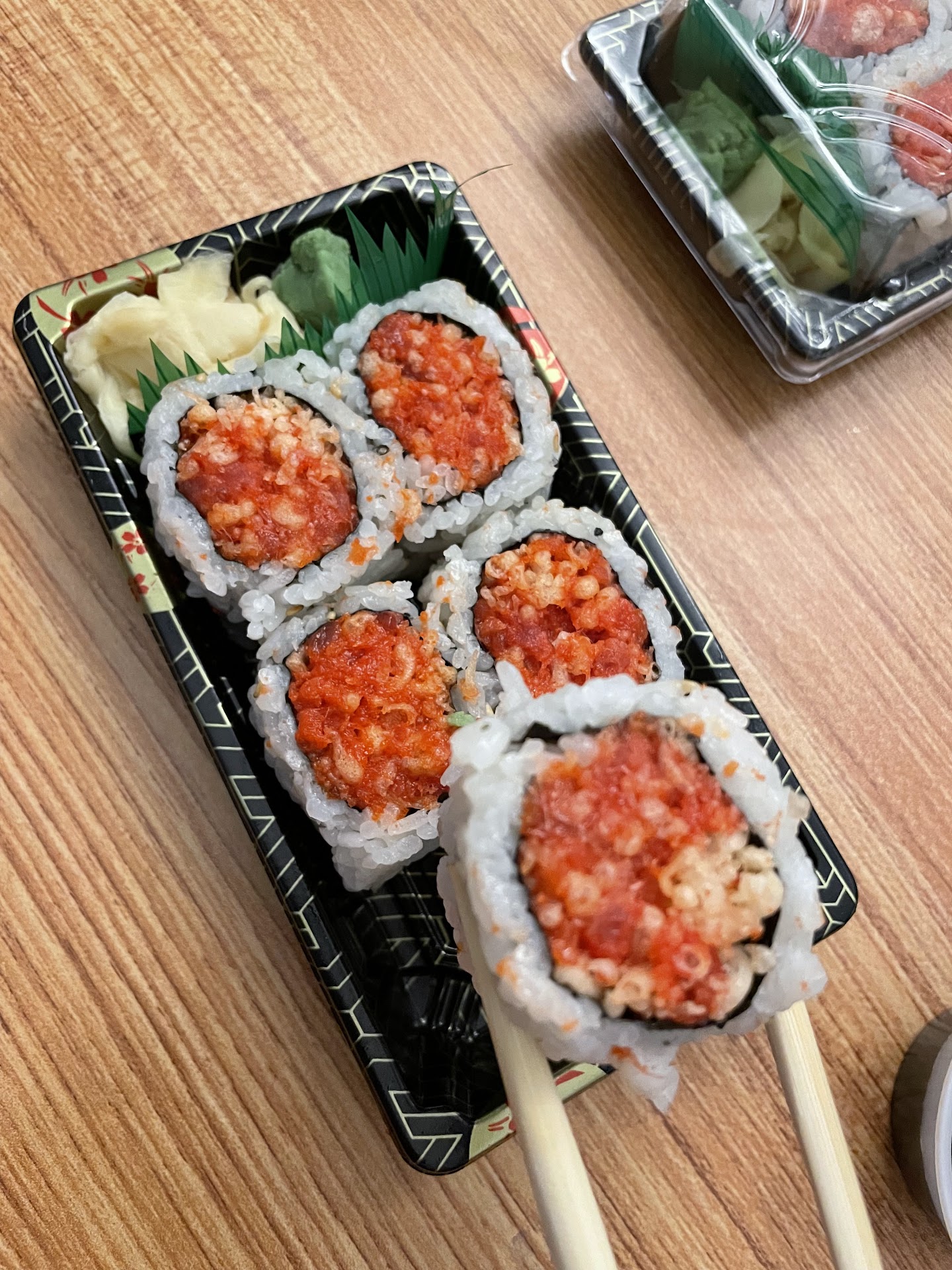Read moreI ordered off of Uber Eats the other day and got the spicy tuna roll deal. The tuna was filled with tempura flakes??? The texture was really weird and the taste was off in general…I ended up trying to make chazuke soup out of it because I knew I couldn’t finish the sushi as is. No matter how long I boiled the sushi pieces, the tuna stayed red/pink rather than looking fully cooked through and the tuna pieces when separated from the tempura flakes in the water had the texture of ground beef. Super weird.