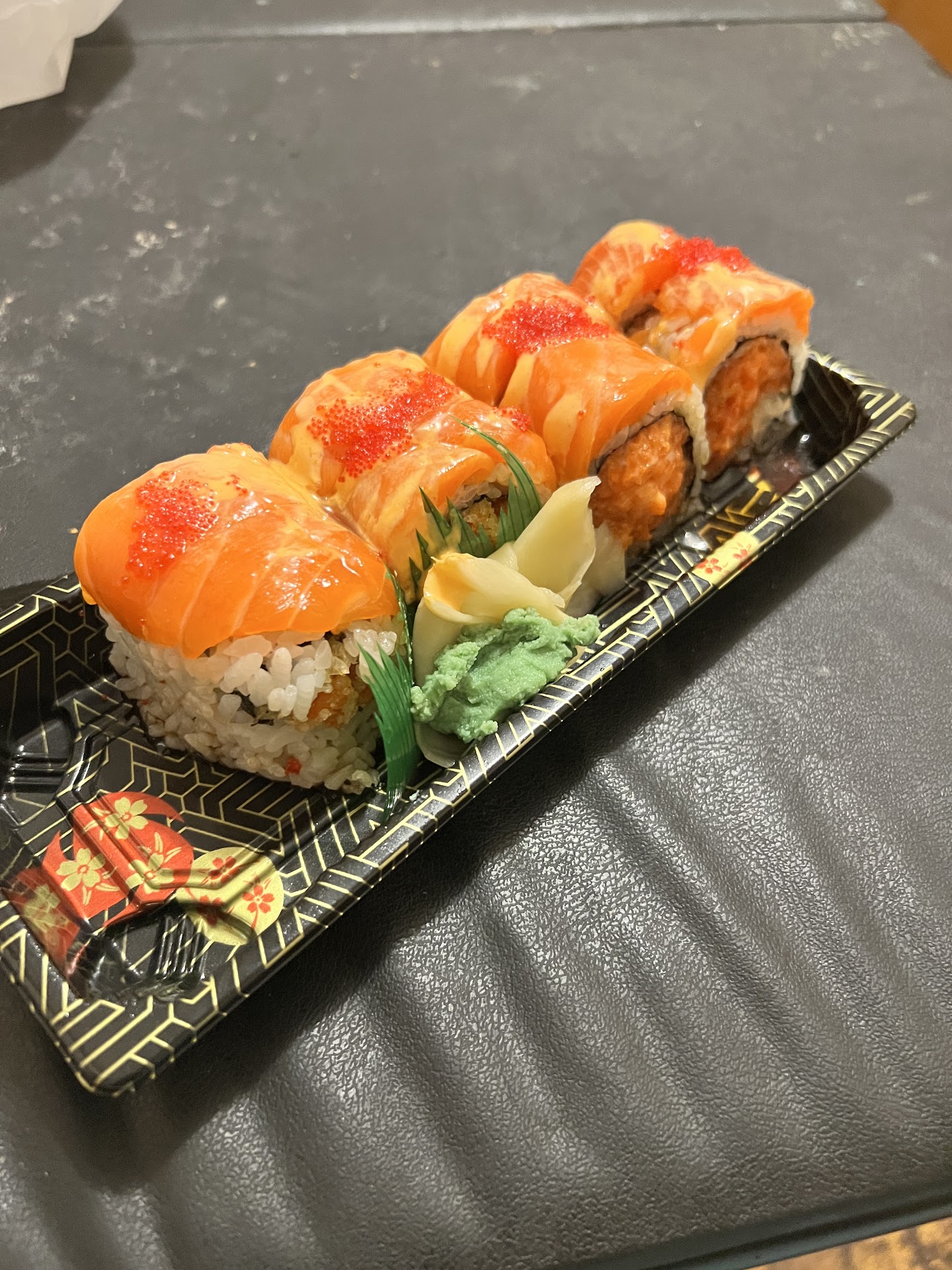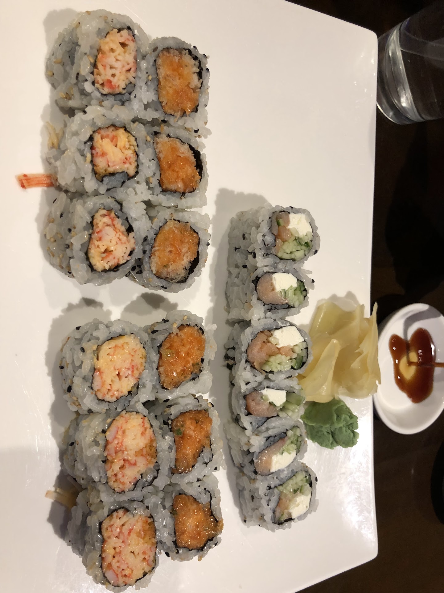 Read moreSmall little hole in the wall. Has about 4 tables to sit down at, and has only 1 waitress. She was very cute and nice and they have the people making sushi visible but in the back. They run a lot of delivery’s so the place is flooded with door dashers, so it’s not as romantic as it could be. I haven’t had sushi in a while and I went in and ordered the fire roll, which includes salmon. And I can tell you from personal experience that this fish was FRESH, it had a very good taste and it mixed very well with its other components. It costed me $15 after lunch hour. And it had only 8 large pieces. I would come back here. The only reason I gave it 4/5 stars is because their menu pricing is a lie. My roll was supposed to be $12 but instead they charged me $15. When I asked the waitress why she charged me so much. She said “because of tax” and there is no way in hell that $12 taxed equals to $15. But for what it’s worth I will still come back, the quality is still definitely their. All I would like to see is for the menu to reflect its...