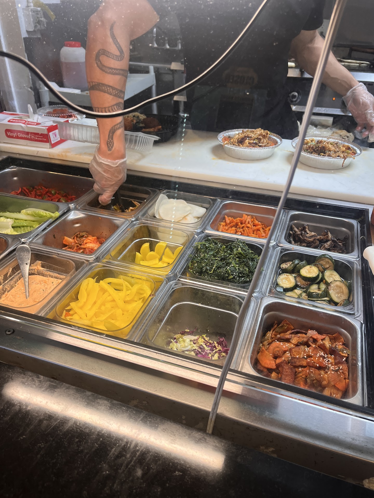 We ordered a $20 Bibimbap (which traditionally comes with meat) that was not labeled vegetarian and we walked out with a bowl that was 70% rice and 30% soggy cold veggies with no meat. If a traditionally meat-containing item is on your menu with no further description, it should have meat. If not, it should be labeled as vegetarian. Especially at $20!!!