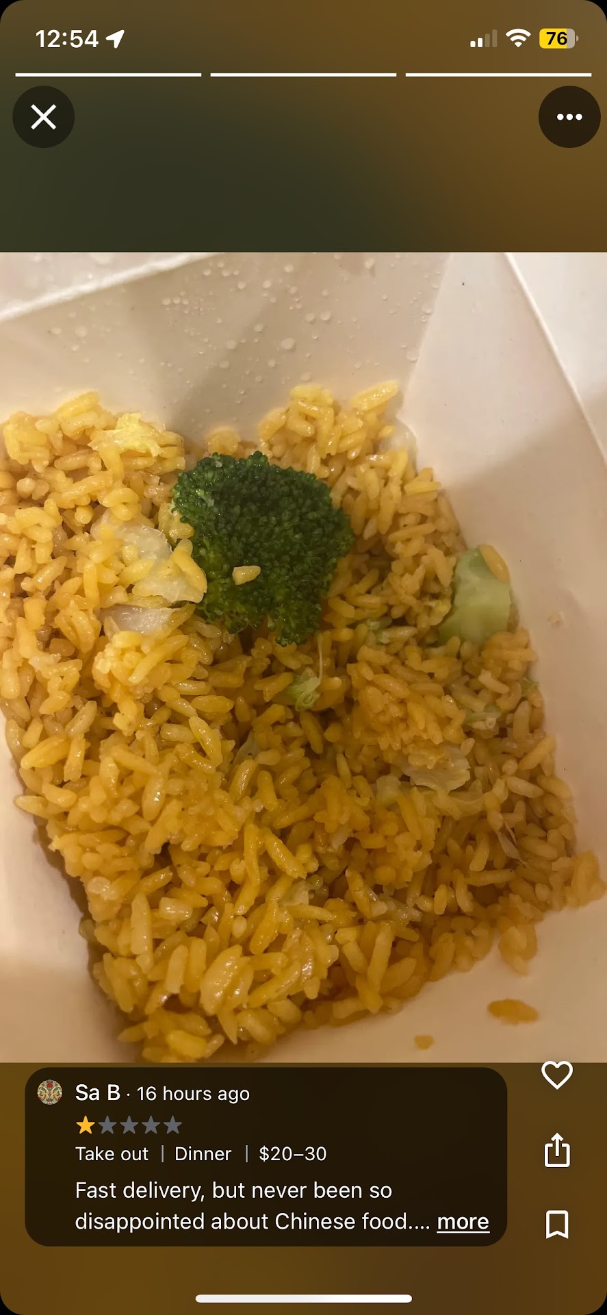 Read moredon't bother ordering from here, not sure how there are good reviews. They skimp out on meat in their dishes. this is my second time ordering a dish with meat in it and I thought it was a vegetarian serving. I get that the prices are cheap, and I'm not expecting a buffet, but it's noticeable to the point where it's almost comical. The first time I ordered chicken and broccoli the container was mostly stuffed with broccoli with like two pieces of chicken in there, and the same thing happened with the chicken low mein this time. Chicken isn't as expensive as beef, why are you guys skimping out?? You're cheap...