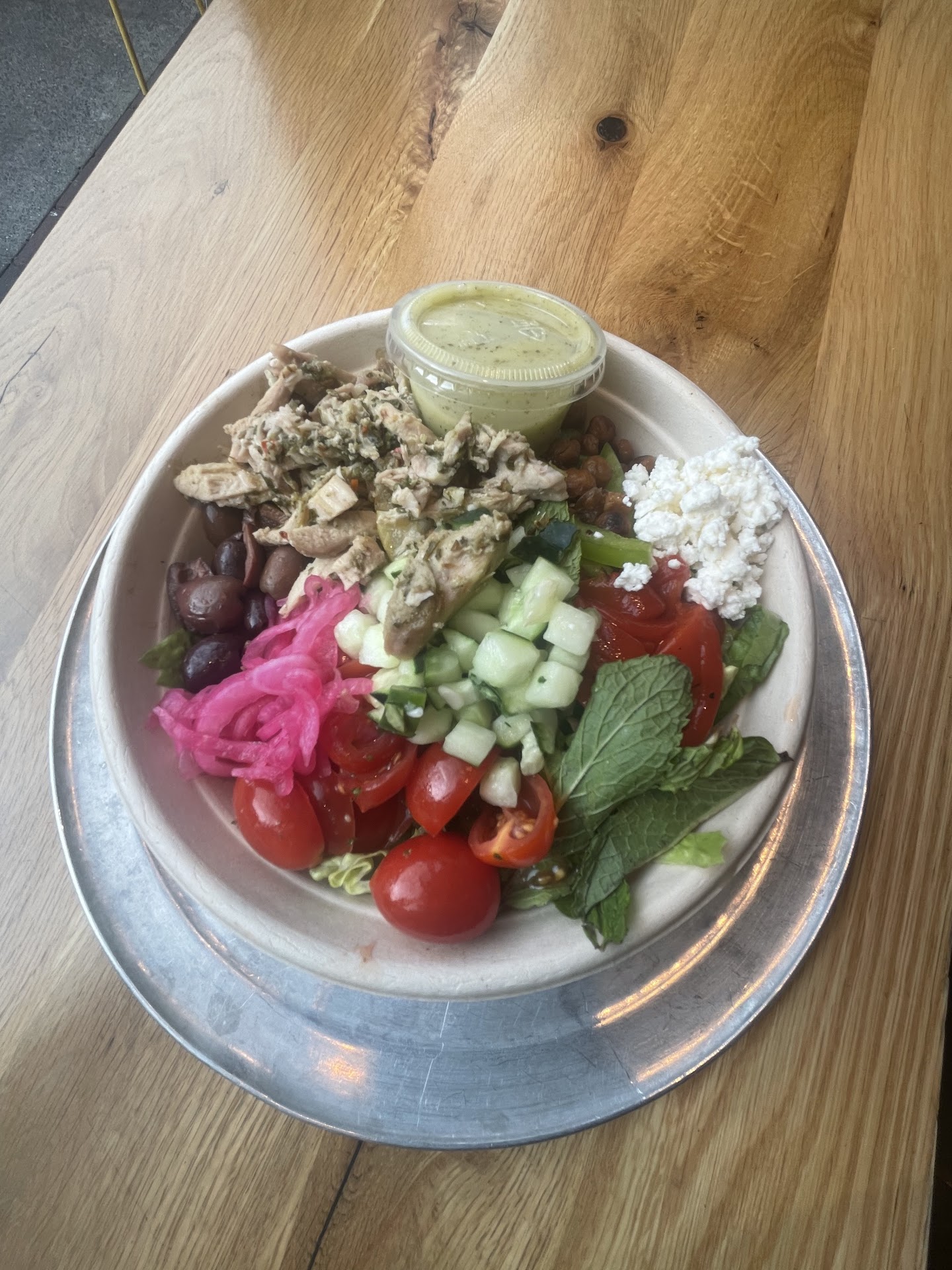 The customer service was the first thing that stood out to me. Despite their busy, the guy at the counter took his time to explain the ropes to us and gave us some suggestions. Their menu was very easy to make out from the screens. You start out picking out a pita or a bowl. From then on, you chose your main ingredient of which they have 6 options. They were very vegan friendly with options like impossible kebabs, eggplant sabich and cauliflower shawarma. Then you go on to customize your meal with toppings and sauces.