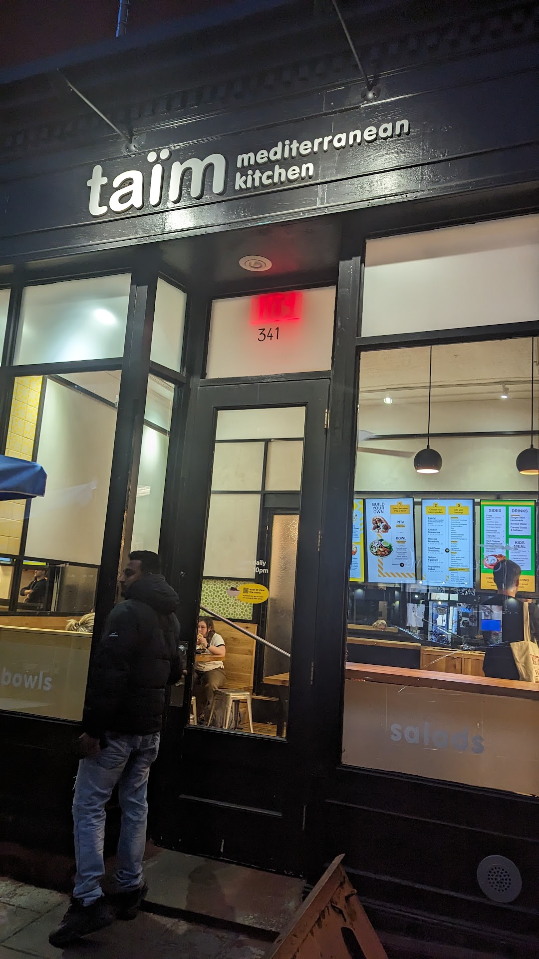 Read moreIt was my first time visiting Taim. Wasn't aware before that it was a franchise. Felt like CAVA and Chipotle had a baby. We were kind of surprised to see how busy they were on their first week. Lots of people picking up deliveries. We were one of the few people using their tables to dine in.
