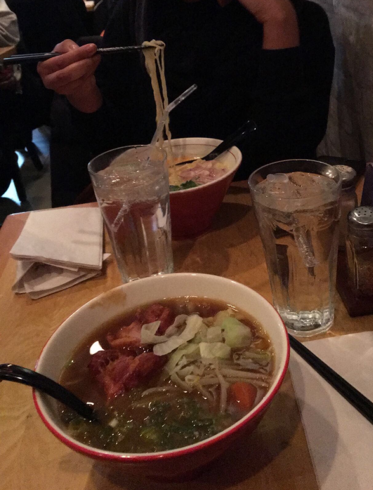 I order a curry chicken ramen with sprite while my friend orders some other ramen with milk or cream in it (idk) and a coke. A couple minutes go past and our drinks come out but it’s two sprites instead of one and a coke. My friend is about to create a whole scene about the mishap, but I tell her to try the sprite first and see if it’s watered down. Thankfully she said it wasn’t watered down, and decided to keep the drink.