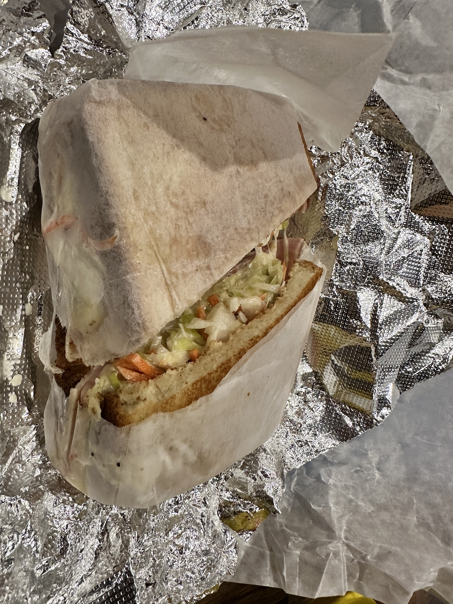 Read moreWe decided to have something to eat at this place. The food was okay, but communication with the staff was very difficult due to a language barrier (not on our side). As a result, I received a hot sandwich instead of a wrap. What was worse was that while we were eating, someone walked up to us and asked for cash. When we replied a few times that we didn’t have any, the person stood there, staring at us. I tried to call over two staff members who were dining next to us, but they didn’t even turn their heads towards us. I don’t think I want to visit a place where I cannot communicate...