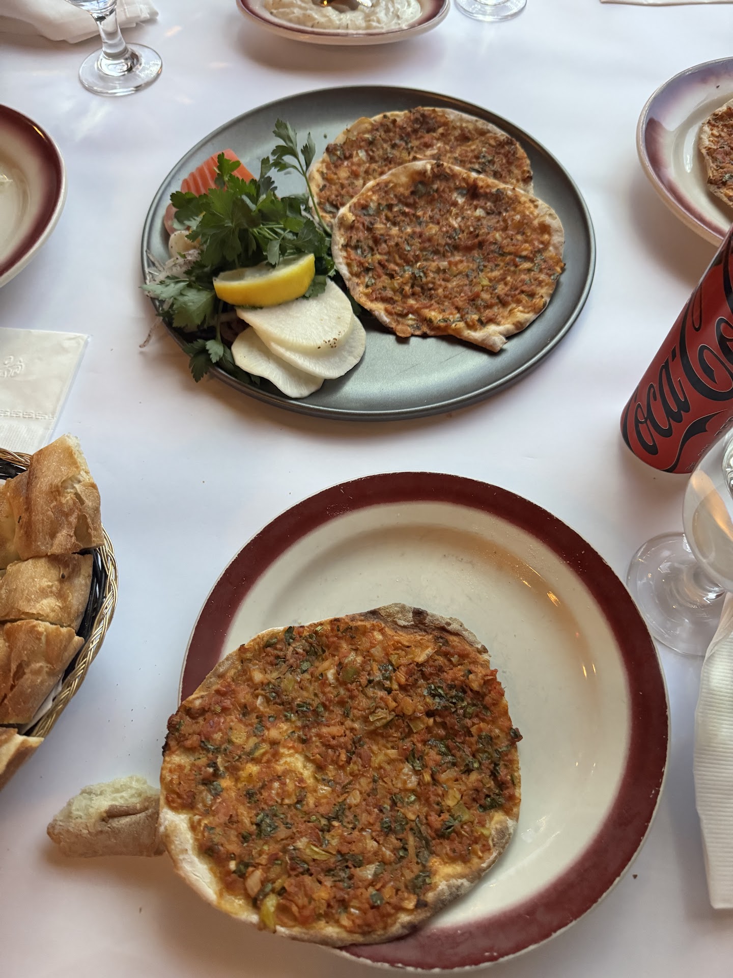 I was there almost a month ago and I was somehow happy with the food and service. Then I wrote a review about my experience. After that I was reading other reviews, seem like they made comment for themselves and their friends to make them look better. Anyway my friends and I went there today again. We ordered calamari, findik (small) lahmacun and cop shish. We waited so long for the calamari, even though next table got there after us and got their french fries and other fried stuff anyway I asked one of the waitress for our calamari, he said it's in the kitchen and coming I was being patient and still waited for it but instead of calamari they brought us findik lahmacun first. Some of them looks bitten on the way and looks-taste like radish was from yesterday as you see in the picture. Since we were hungry we didn't say anything and started our dinner then all the sudden they brought us our main courses then after a few seconds they brought us our calamari. We got our appetizer after main course and we have all the food at the same time on the table so, I wasn't happy at all but since we were hungry we didn't make a big deal and ate our dinner. After we finished our dinner waitress asked us if everything was ok, do we need any desert or anything. I said I wasn't happy with the service so we don't want anything else. I assume she felt bad or knew what happened she offered fruit plate, even though I said no they still brought to our table and my friends ate some watermelon and said it's been sliced since morning or yesterday. If you offered fruit plate to make it up your mistake at least you should bring FRESH fruit not the one from yesterday. Seem like instead of putting in the garbage they gave it to us. I was pushing my limits and still kept cool and didn't say anything but when we were paying the check, I only left $ 1 tip and told waitress about the reason and our experience with the food and service. Hope she understood and mentioned these problems to...