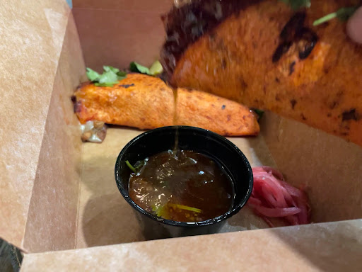 Had the tacos - chicken on the first try, chicken & beef birria on the second - and the flavors were fine. Veg portion was fresh and helped with brightness, portions overall were ok.