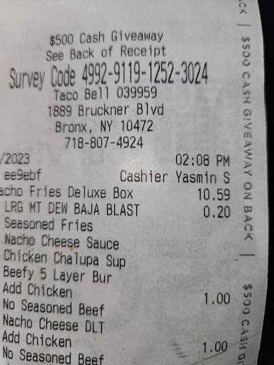Read moreWhat can I say to this specific business personal. They played twice with my order. Even after choosing vegetarian option. I’m served with food that has meat in it. So what’s an whole point of asking to choose what type of meal option some individual want. Atleast people will be aware that you guys don’t mean or consider vegetarian meal option as vegetarian besides your food may have meat in it. So they won’t be bother to get food from you guys(Taco Bell). You guys don’t know why someone is choosing vegetarian meal option. It can be their preferences or religious believes. But serving them food with meat in it. Not only consider to play with their food but with their religious believes as well. Very very disappointed right now. Cause I have paid for a food which I can’t eat even I’m hungry. Just due to their irresponsibility as they have mess up my order and here I’m writing to inform people to be vigilant and pay attention. Cause they don’t care and they take no responsibility of their wrong doings. Let me know if need receipt or pictures of my food. It’s still packed as I took it from the location. Only opened once cause I was going to eat but couldn’t as I...