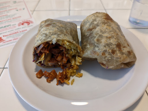 I stopped by for a quick lunch yesterday around 1:30pm. It was decently crowded but the hostess immediately seated me at the small bar near the front (in my experience, restaurants seem to be super on their toes for sit-down customers by themselves, I suspect because those customers don't have anyone in their dining party to distract them from a potential wait time). The menu/ordering process is unique in that you have to take a golf pencil, mark what you want and hand it to the waitress to forward over to the kitchen. I'd done a little prep work beforehand and opted for the roasted pork burrito, which showed up within about 10 minutes.