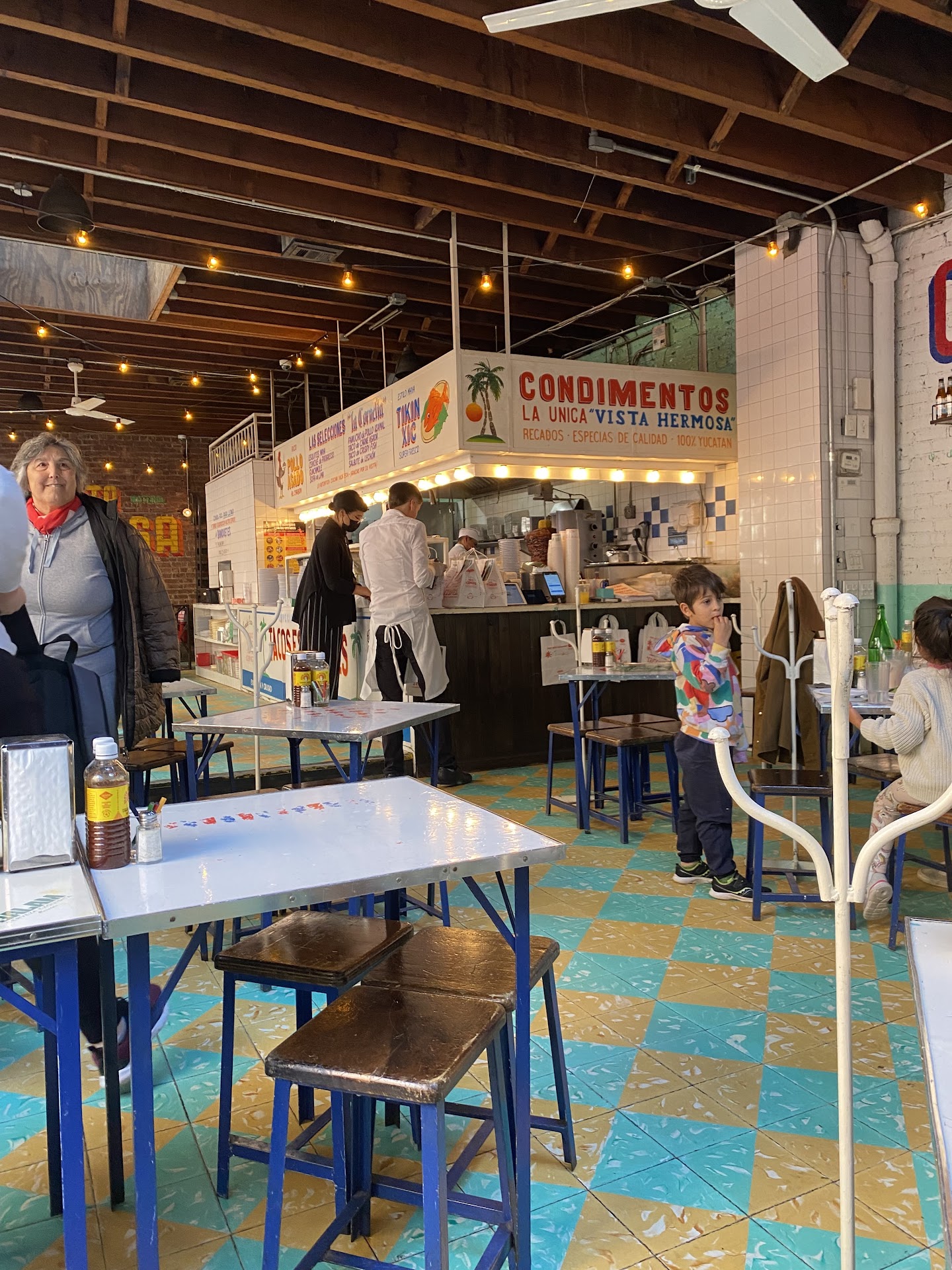 Read moreI was in the Manhattan with my kids 21, 14, 14yrs and wanted to eat some good authentic Mexican food, saw this place Google Maps. I have to say we where all disappointed with the food☹️ the Host was pleasant, and the service was good. Let's start with the guacamole was very bland, I would not even call it Guacamole it's just smashed Avocado, it was ripe though. One of the kids ordered a chicken Quesadilla, first thing it was a open face, small, chicken was tasty but dry, difficult to eat, it was not what you normally think you will get when you order a quesadilla. This brings me to the menu, it's a bit too simple, I would appreciate a short description of the dishes available, especially if you're not familiar with the dishes and how they're made. The chips where made in house which would have been nice if they weren't overcooked. The Tacos, I also believe were made fresh in house they tasted good, I did like both Fish Tacos, they where fresh, a nice kick of spiciness, I like spicy food but if you don't you may not like it. Veggie Taco was great also little spicy. The Al pastor Taco, usually my favorite, but here it was a bit dry, and the thin slices of pineapple look pretty on the top of the Taco but I could barely taste it. I would recommend small chunks of pineapple instead so you can taste the burst of juice from it when you take a bite. It should be spicy and sweet at the same time. As for the ambiance, look of the place very nice, maybe better for drinks with friends and a Bit to eat instead of family dining. Hot water was served to drink only got ice after asking twice, no Air Conditioning, the tables for 4 people were way to small, to low to the floor, seats with no back on them, very uncomfortable. Also I found something very annoying about how our table was served our food. Individuals orders were combined on plates, we had to figure out who's food was who's, thank goodness that I was eating with my family and not someone that I don't want to share germs with. The truth is I just feel it's lazy of them not to give each individual what they ordered. For these prices I expect more. From this experience I wouldn't come back here with family but drinks with close friends it maybe ok, I'm not sure because I haven't done that yet. It was so hot inside with out AC or even cold water, it did remind me of my trip to Tijuana, this day I got the good and the bad parts of some of the experience of eating there. This place has potential, hope they take some of my suggestions to...
