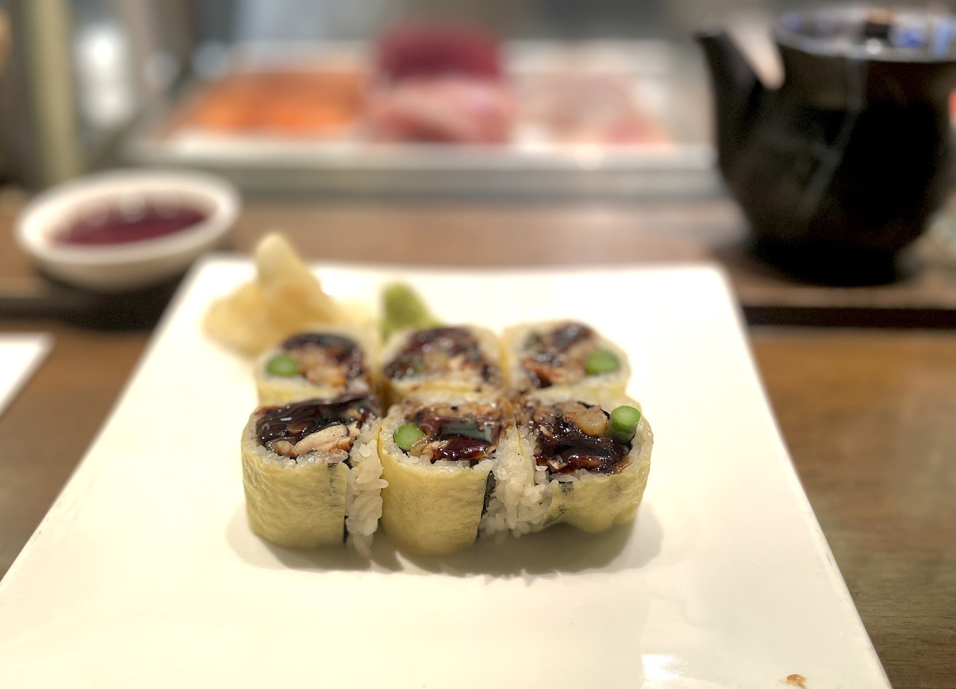 The eel roll is always a regular order for me as the flavor and crunchy texture of the asparagus compliment one another SO well. Delicious. I really enjoy the tentacled exterior of their shumai which is only made more enjoyable with the sweet heat of the mustard. Who doesn’t find a big hot bowl of udon in flavorful broth so comforting and combined with a collection of fried veg and a couple perfectly cooked tempura shrimp.