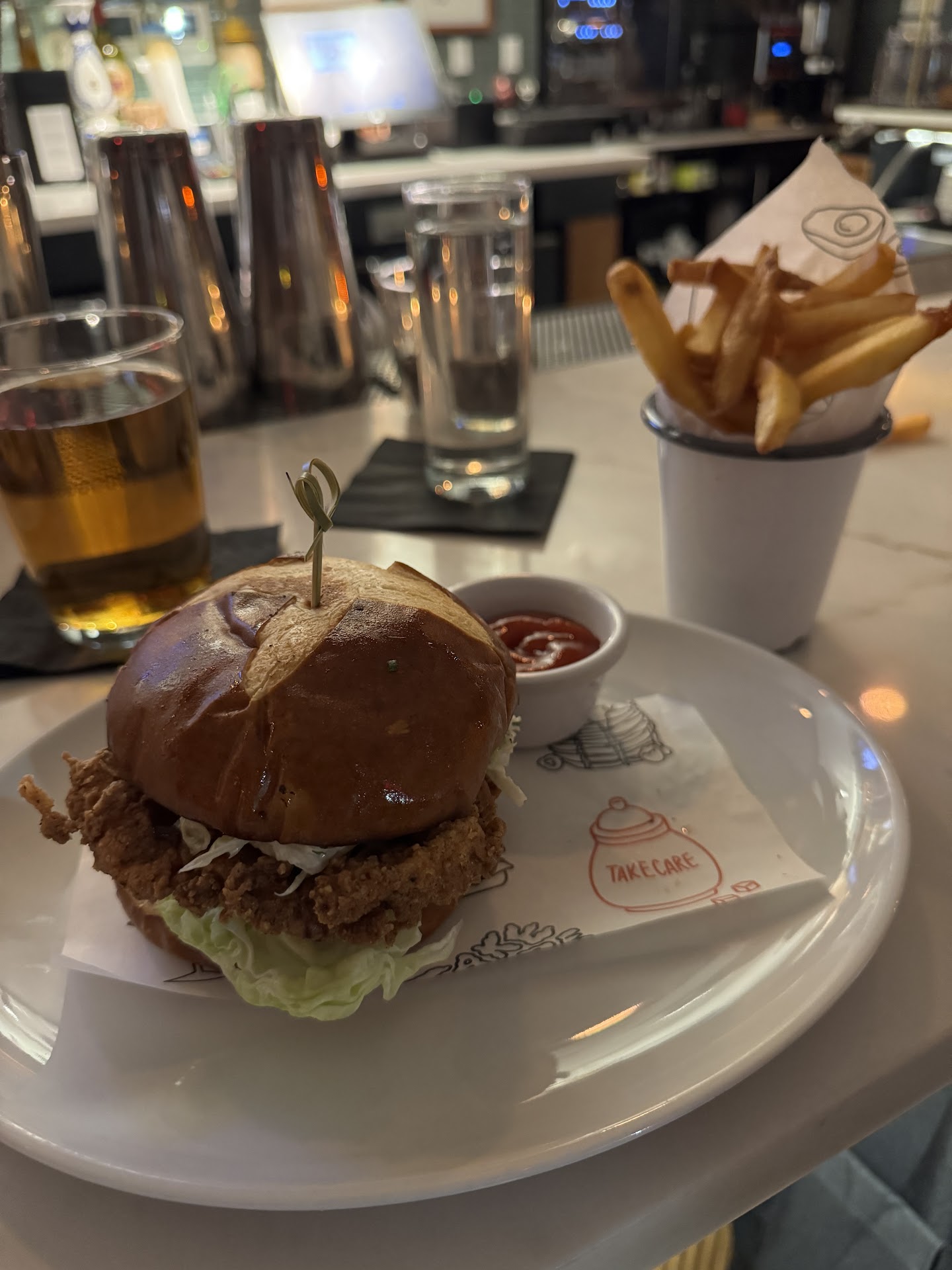 After a long day out at Coney Island we were tired and didn't want to go too far from our hotel for dinner, so we decided we'd try the 'Take Care Bistro' at the hotel. The hotel receptionist said we didn't need to make a reservation so after a shower & change of clothes we went down into the restaurant, were immediately shown to a table and I was pleasantly surprised by the sophisticated decor and how atmospheric, inviting & cosy the restaurant was with dimmed lights and a small lighted candle on each table. We ordered the spiced carrot humus with grilled pitta breads to share as a starter, which was very light & tasty and was a great start to our meal. My wife had the BALT (bourbon pepper bacon, avocado, lettuce, tomato) sandwich with a side of salad and a glass of Coney Island draft beer. The delicious, unique, smokey & hickory taste of the bourbon pepper bacon really elevated the sandwich to be the best BLT sandwich my wife has eaten. The tangy & peppery pickled vegetables in the salad also elevated it to a great tasty salad. I had the chicken snitzel with parsley butter & fries, which was a fabulous meal. The rich parsley butter combined with tangy lemon juice worked so well, soaked into the tender & moist fried breaded chicken. We didn't have any desert as we were full and the total bill of $80 was very good value for a fabulous meal served by our welcoming, friendly & efficient waiter in a...