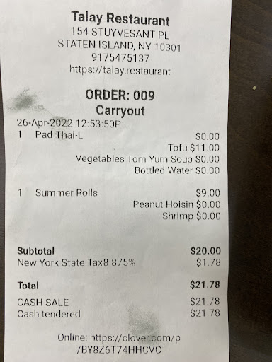 Read moreThis place use to be decent. I absolutely love Thai food I’ve been eating Thai for many years. I was excited when they first opened because I don’t like the other Thai options in SI. I noticed the last few times the prices went up and the portions seem less. I understand prices have gone up everywhere, but when paying 14 dollars for a dish it should have more protein than fillers. I ordered a chicken dish and it was all cabbage, onions and a few other vegetables that were not mentioned on the menu. I was completely thrown off. When I mentioned it the woman said if I was picky I should have said something ahead of time. I told her cabbage was not mentioned on the menu nor were some of the other vegetables that I didn’t mind. I also mentioned the ratio of protein to all the cabbage and onions and she said they weigh their meat for each dish. Instead of offering to make a new dish and apologizing she just said I’ll give you your money back and was sour. Told me I was ridiculous and I let her know she was and that I’d never recommend or...