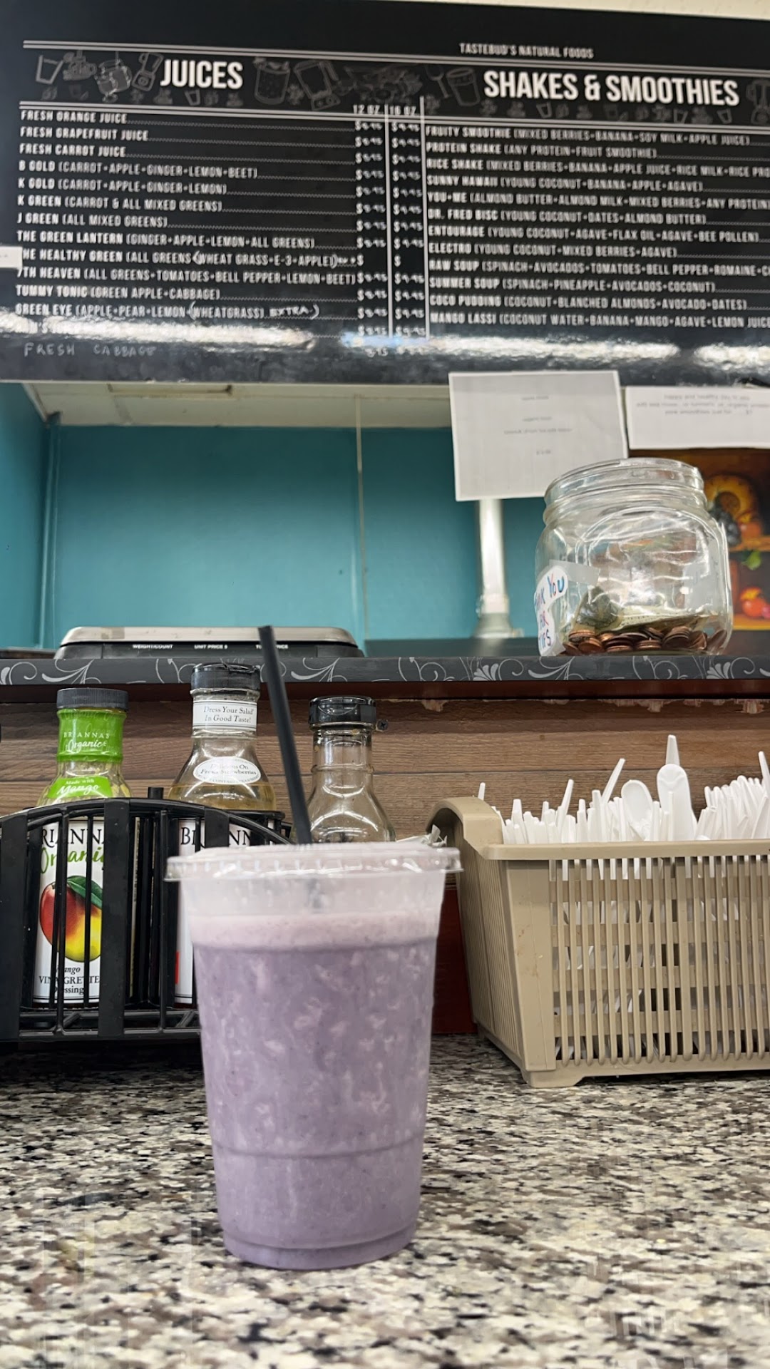 About a month or so ago that all went out the window. I came in from the hospital where my mother had been in and out of for weeks, she couldn't eat solid food and wanted something more nutritious than the hospital food sludge they offered so I wanted to get my mom a smoothie and bring it back to her. I walk in at 5:30 PM. Note their closing time is 7 pm. I walk to the smoothie area where I see a customer hand the smoothie maker behind the counter a crisp $20 bill. I thought nothing of this initially and went forth and asked if I could have a smoothie waved. This small older man behind the counter seemed irritated that I had come up to ask him for something at all, and he condescendingly waved me away saying they weren't making smoothies anymore. But the guy whose smoothie you just finished making for a sweet $20 tip was the exception? Closing time was 7 pm and there was no explicit sign anywhere that smoothies would not be made anymore by a certain time, I couldn't imagine why they would stop making smoothies at 5:30 pm if they close at 7 pm in any case.