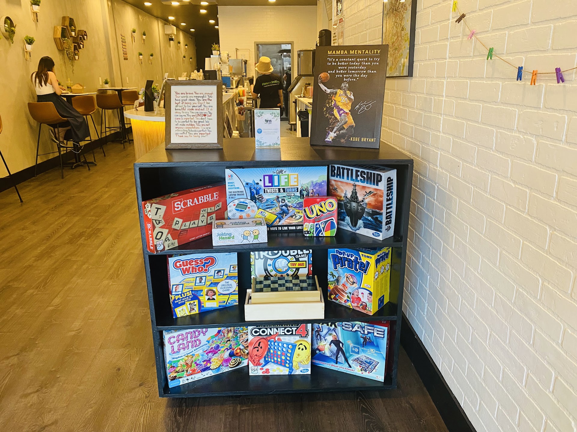 Tean and Milk continues to be spacious enough w/ tables and stool-style seating. They have added a couch on the front of the establishment. There are also games such as.board games , etc. that patrons can play while enjoying their Tea and Milk treats.