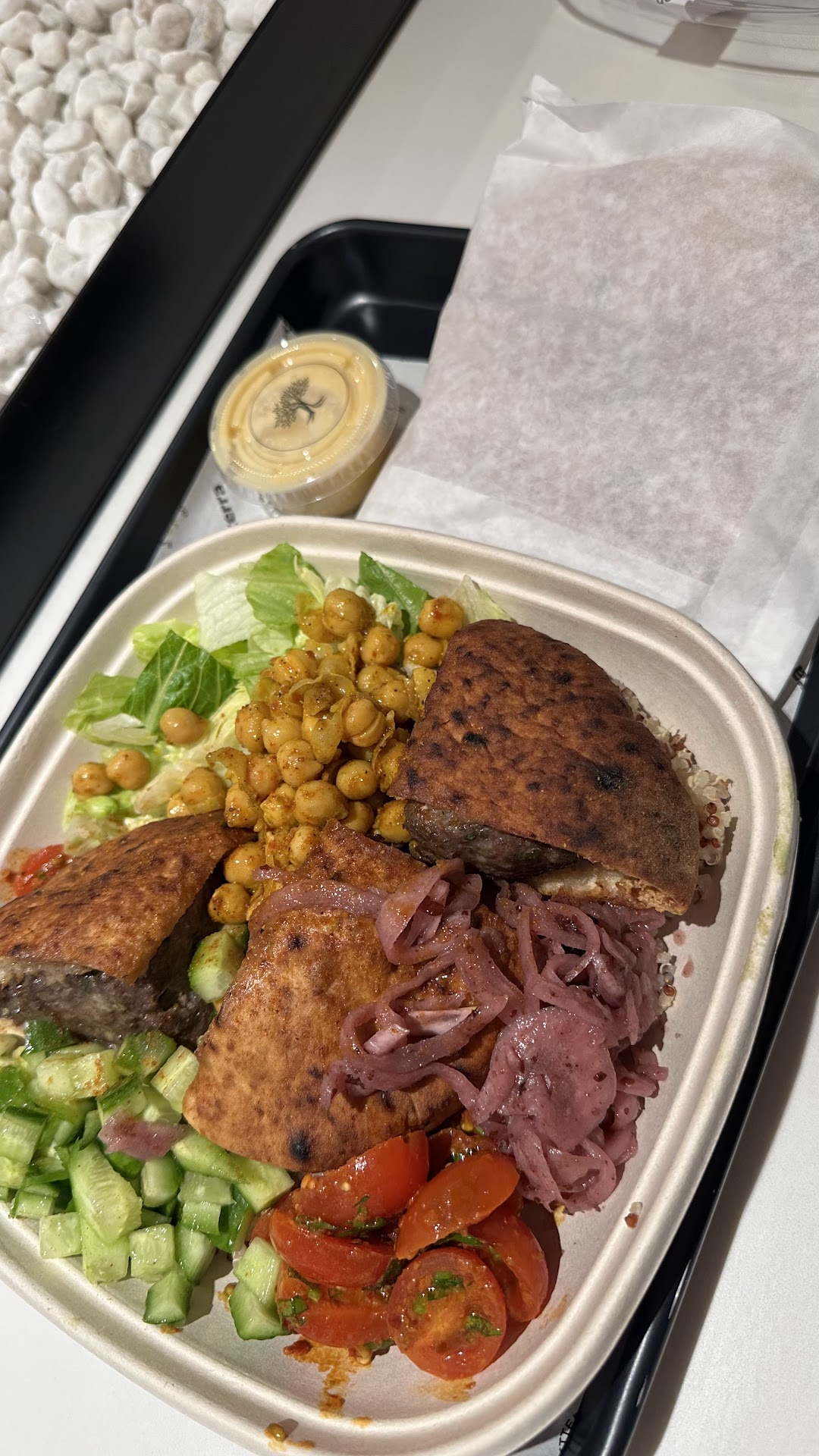 The salmon was flavorless and the tzatziki was just splattered on top of the food.