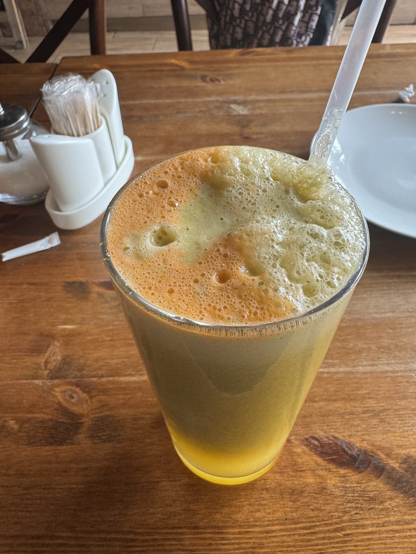The service at Terra was a major drawback. When my friend ordered orange juice and I requested green juice, I was disappointed to find remnants of orange on top of my green juice. It was clear that the juicer had not been properly cleaned between orders, which was quite upsetting.