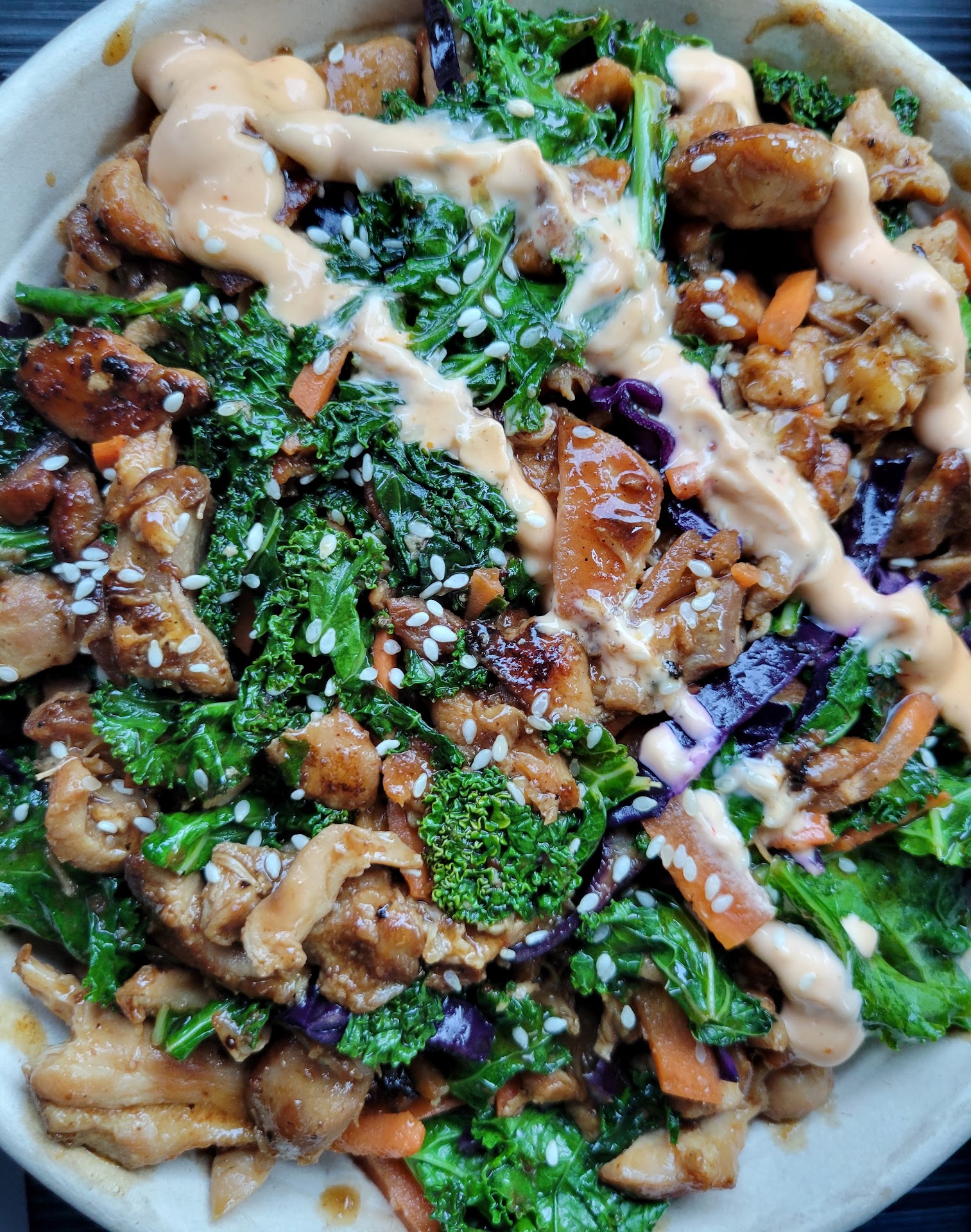 Chicken Teriyaki, seasonal vegetables and pickled carrots 🥕 with premium sirloin steak