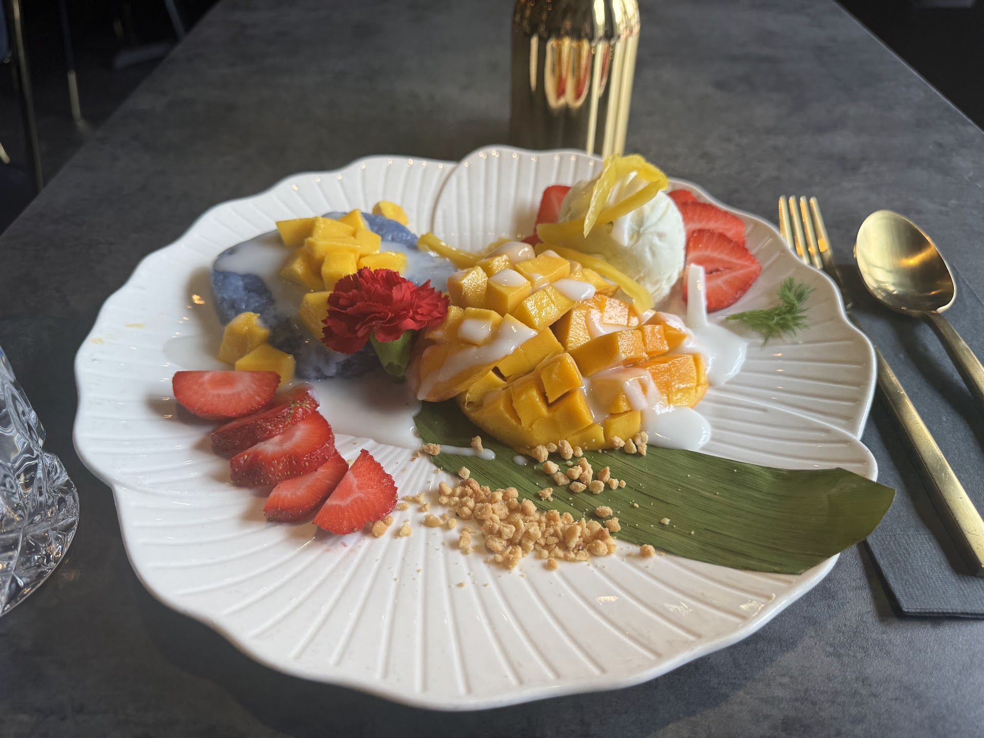 The real show stopper for me was their Mango Sticky Rice (which was actually ordered for me). The dessert is coming back in season, and they’re advertising it rightfully so. The homemade Coconut Ice cream is comes with is downright delicious. I wish I could emphasize that more. It was creamy, decadent, and indulgent. Note that this is coming from someone who was actually initially skeptical since I’m not a big fan of Coconut Ice Cream (Ohm assured me it was delicious, and checked in with me afterwards. He was obviously right). The rest of the dish was wonderfully balanced. The Coconut Cream wasn’t too sweet, the salt was well balanced, the rice was warm and just the right texture, and on top of all of this, it was plated beautifully. Not deserving of its own paragraph, but still delicious was the Thai Tea— not too sweet which is exactly how I like it.