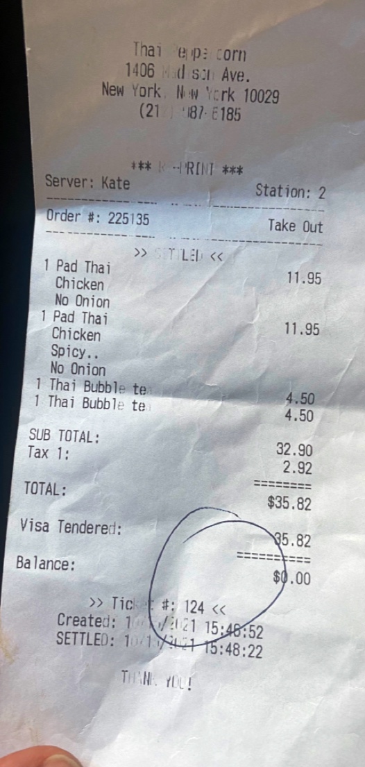 Ā Ā Ā Read moreMy wife and I ordered two pad Thai chicken. One was spicy. We ordered out, but decided on staying to eat. When I started to eat the container that had spicy written on it, there was no space to it. When I asked for spices to be added the one cooking said that they could not add spice because thereās no refund if itās too spicy. My question is why charge me for spicy and put spicy on the container, but add no spice to it. Itās unethical to charge for some thing and not provide it. I enjoy having Thai food and do not mind paying, but I should get what I order. Also I have looked at the reviews but I would not eat at this restaurant again. The food can be much better. I will am...