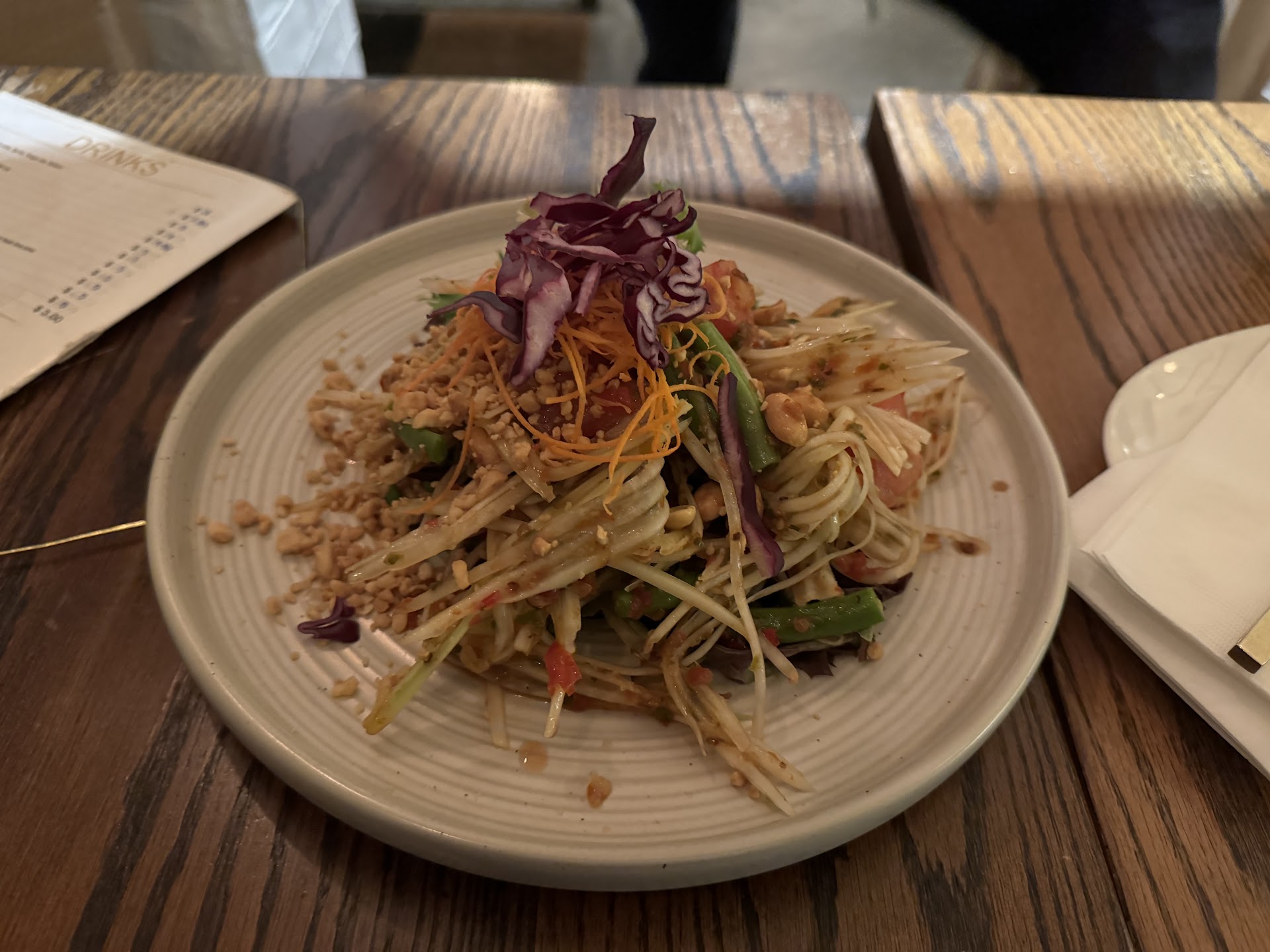 Once we were seated, the ambiance of the restaurant was just perfect. The lighting was warm and inviting, and the decor had a beautiful modern Thai flair. It was clear that a lot of attention had been paid to the details, and it really added to the overall experience.