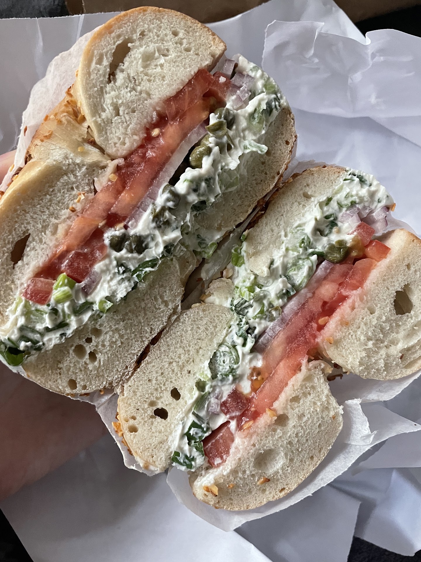 Read morediscovered Bad Bagel via the NYC Bagel Passport promo and decided to come back bc i really enjoyed the bagels & the quality of cream cheese spreads. decided to go with a whole wheat everything bagel with cucumber-dill cream cheese. the bagel had nice inside chewiness with nice balance of sweet and saltiness—the outside had a slight crispness. the cucumber-dill cream cheese is thick smooth with a filling fattiness and the cool herby refresher of cucumber and dill. the combo of the everything bagel and the cucumber-dill cream cheese makes for a filling lunch sando when you need something substantial and filling. the space is really clean and well-maintained. there’s some seating in the front. service is pretty average but works for a casual bagel / sandwich place. this is the only bagel spot that i have been to in Bushwick and has been a nice...