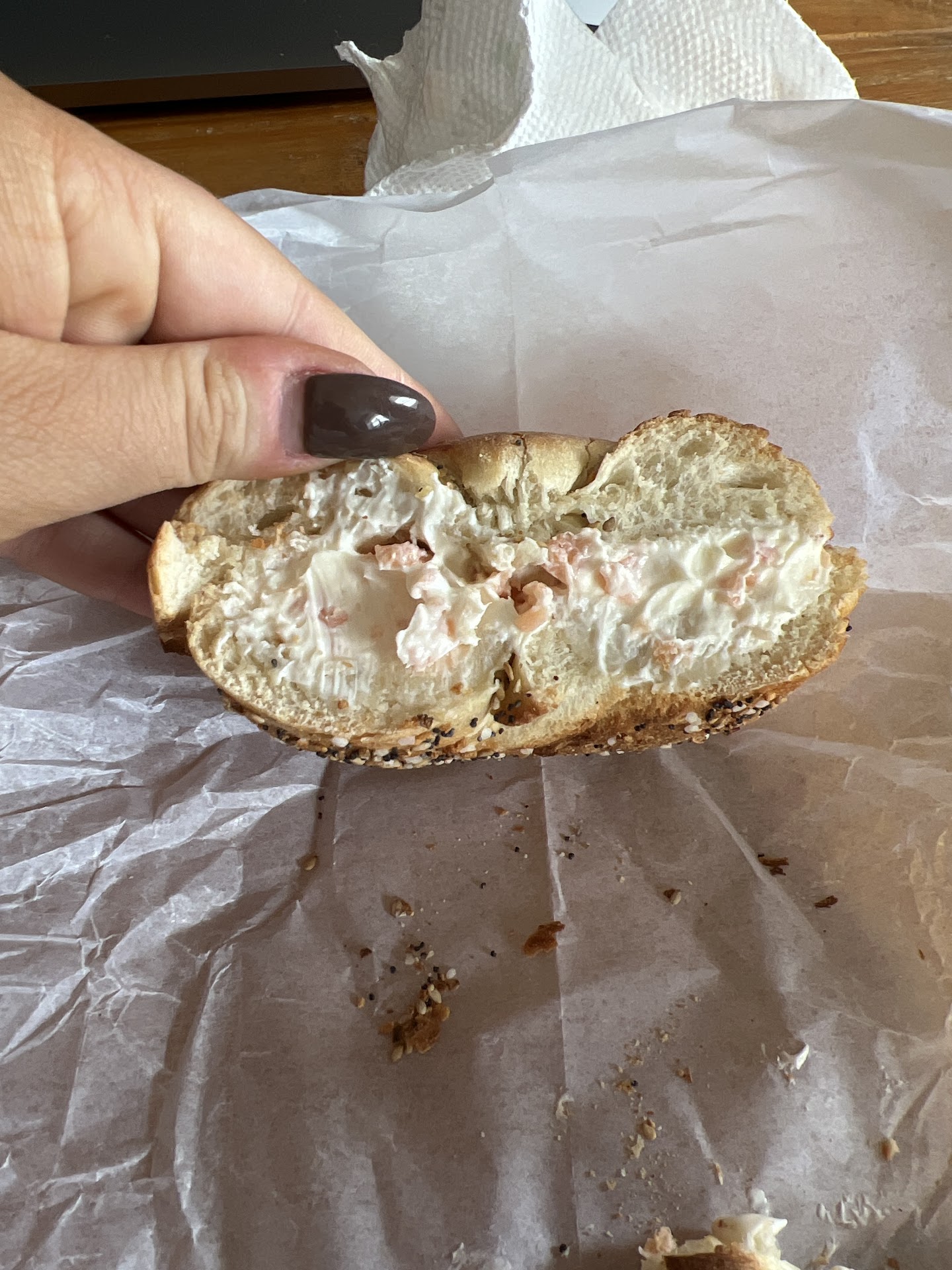 Itâs unfortunate to give this place 1 star because the food is great and the employees are very nice, but they get your order wrong almost every time. Weâve been coming here pretty often for over 2 years still trying to give them a chance because we love their bagels, but more times than not our orders are wrong. Iâd say around 80% of the time our orders are wrong. They just wonât write anything down, itâs ridiculous. I ordered a whole wheat everything bagel and went back to the store after I saw it was wrong, and they straight up tried to convince me this was whole wheat. Itâs not, clearly itâs regular per the picture. They insisted it was whole wheat but just a âlighter color todayâ. What??? Insanity. We pay for add ons to breakfast sandwiches like avocado and itâs missing. Waste of money and extremely frustrating because itâs been consistently happening for years. Updating this review because we just ordered bacon egg and cheeses and they forgot the bacon, didnât melt the cheese and absolutely drowned it in hot sauce. It is inedible. Like so many of their egg sandwiches because they make them horribly and/or always forget your order - itâs inedible there. Such a waste of money because itâs expensive. Never...
