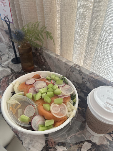 The salmon salad was fresh and flavorful; I would love to see it with a few more additions like eggs or avocado to make it even heartier. The goat cheese spinach bun was flaky, buttery, and packed with savory goodness.
