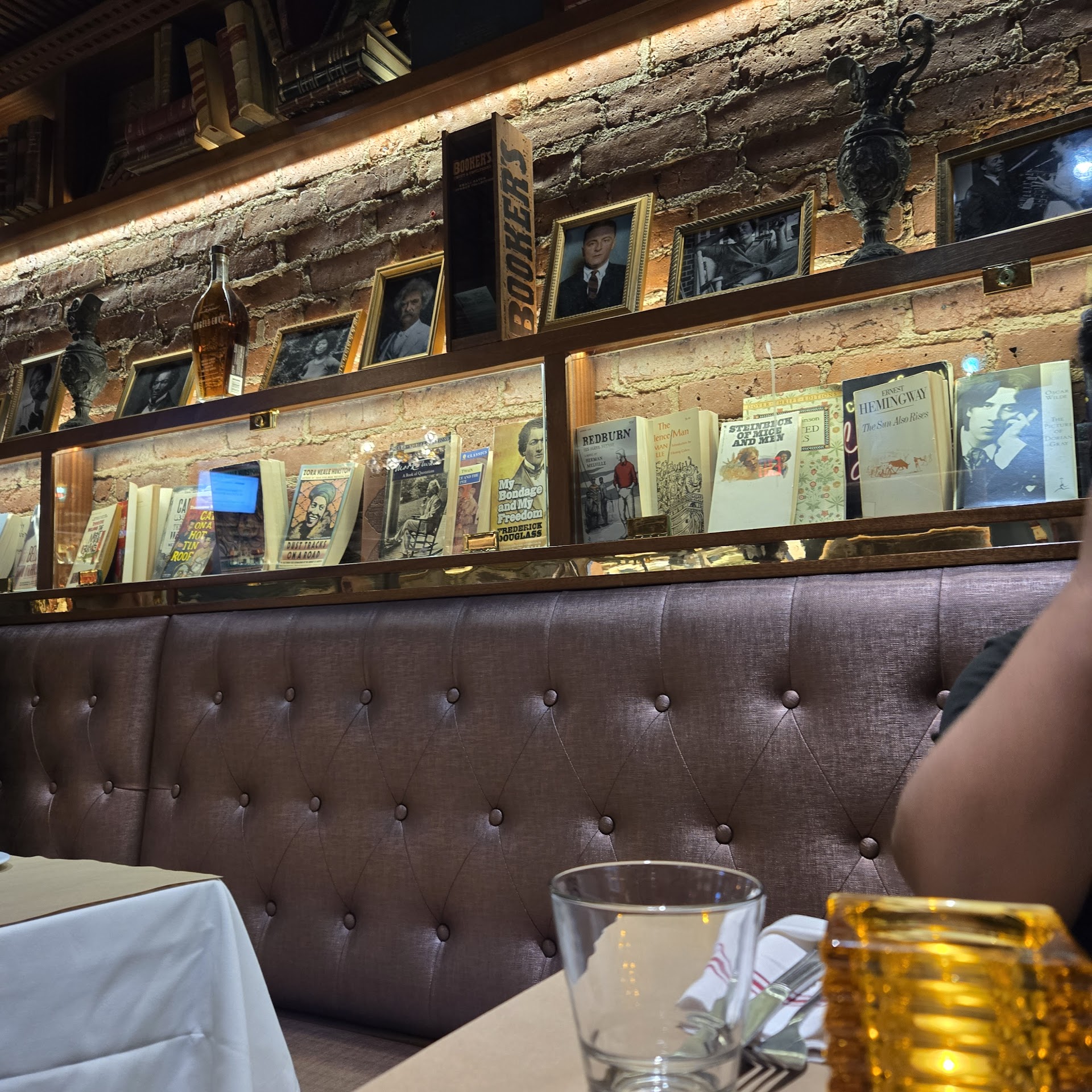 WOW. The spirits collection is an entire book case, 7â x 9â each and there are 2 of them, whiskeys displayed like a Hall of Fame for all your favorite aged spirits (behind the bar). There were close to 100 of them.