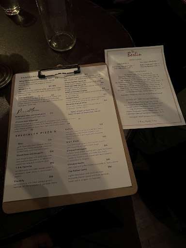 Read moreMy husband and I had our first experience at The Berlin last evening on my daughterâs recommendation. Loved the ambiance and the jazz band was great.We sat at the bar which seats about 6. Two bartenders were on duty and our drink order was taken right away. While our cocktails were delicious, the service ended there. We had to literally flag down the bartenders who were three feet away for our food order and bill. We were considering a glass of wine with dinner but both of our âserversâ were totally consumed with conversing with an acquaintance at the bar. I have been better served and felt more welcome at a bar that seats 20 with only one bartender . As a matter of fact, thatâs exactly what happened when we left The Berlin and went to Brownâs for a nightcap! We liked it enough to try it again, in hopes of...
