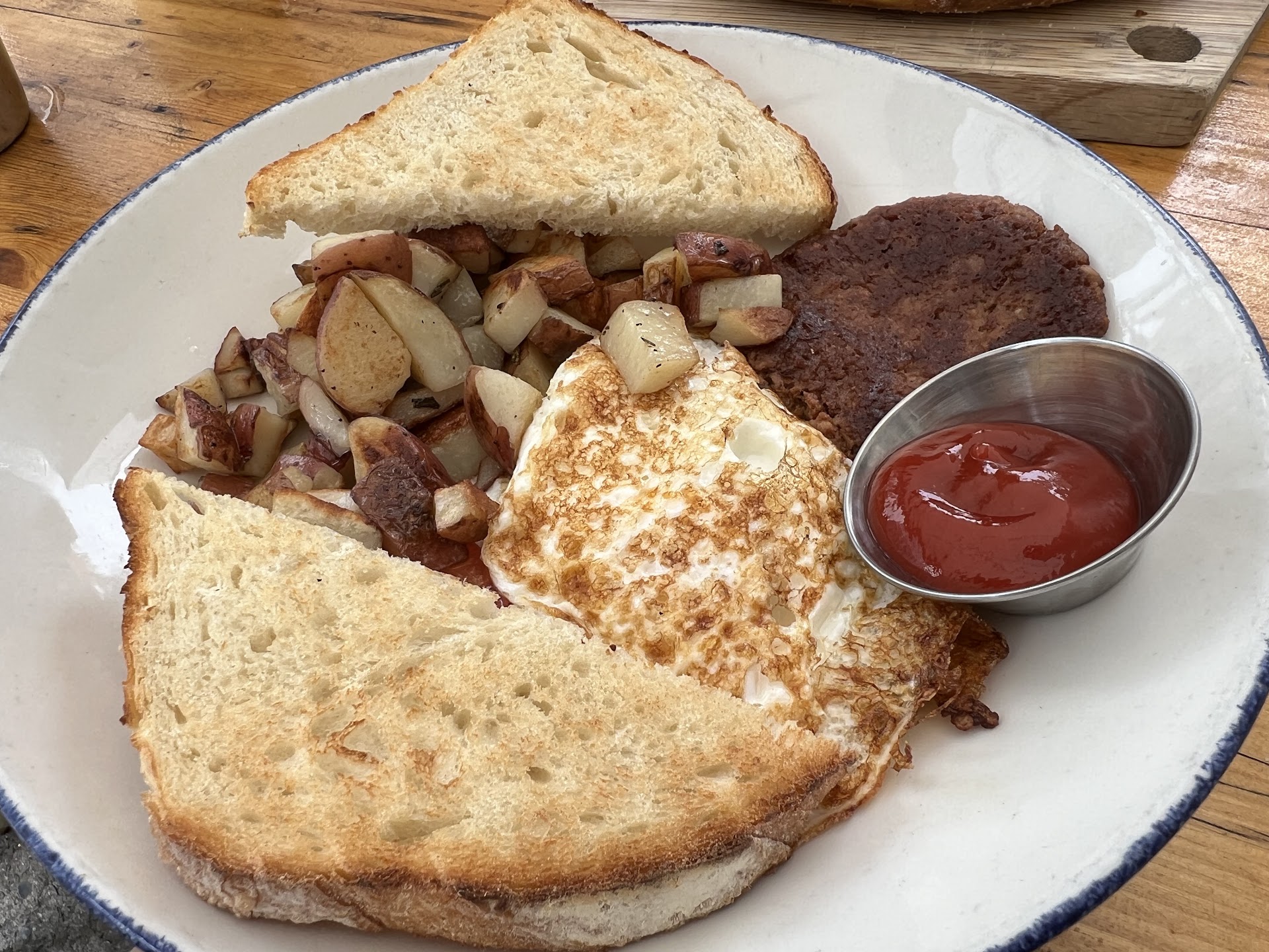 Read moreThis review is for the Kenmare St. location only, as it's the one I've visited. Breakfast on Tuesday morning, I walk in with relatives. The first thing I noticed was a rather unwelcoming server, asks for proof of vaccination like everywhere else. The second thing that I really disliked was the smoke, since the kitchen appears to be open and behind the counter, so much that I'm surprised that the fire alarm didn't go off. I don't enjoy this because I know that my clothes and hair will hold that strong scent for the rest of the day, even my handbag still smells. Loud music, not bad just loud. Not enjoying the atmosphere at that point, but the worst part was when my husband walks in minutes later to say hello, as he was in the area, and walks a few steps where we were seating, wearing his mask and standing. The gentleman/server asks in a very intimidating manner for proof of vaccination, in such a rude and inappropriate way that we all went quiet. My husband pulled it from his phone, and this man still stares at him like they were about to fight, so unnecessary and thuggish, just out of place. Apparently this gentleman got upset because he thought that my husband had ignored him when he first walked in, but they are blasting the music at 9am in a tiny space and it turns out that my husband is a veteran with hearing problems. Honestly, it was so unpleasant and inappropriate that at this point we wanted to eat quickly and leave. I will never go back, or at least will not go in if I see that this person is serving. Who wants the aggravation? My mom liked her breakfast though, but my croissant was very hard and chewy. No love lost from me, the server should be happy that business is busy like it used to be before the pandemic, but instead he chose to behave like a thug. And now that I'm reading the newest reviews (all of them mention an aggressive waiter), I bet my life that we are all talking about the same guy....