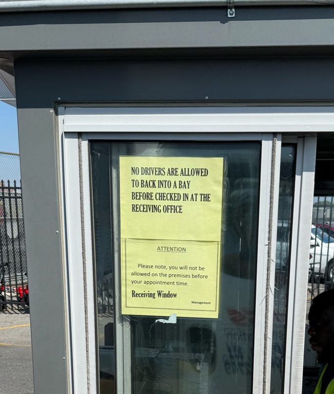 Park on the street & then walk up to guard shack to check in. Friendly security guard. Check in only 1hr before your appointment time. Once checked in proceed thru the yard to the end of the building. Entrance to the receiving office in on the side of the builYard is medium size, enough room to back in but no room to stage. Walk into receiving office & check in with staff for a dock door & further instructions. Be patient as many dock doors will be temporarily occupied but soon empty. Back into an available dock & proceed back into the receiving office. Take your paperwork into the warehouse and find dock foreman. He’ll then direct you to an available loader that will handle your unload. Once unloaded the loader will then go outside & hand you your paperwork. Proceed back to the office at the end of the building to sign out & receive...