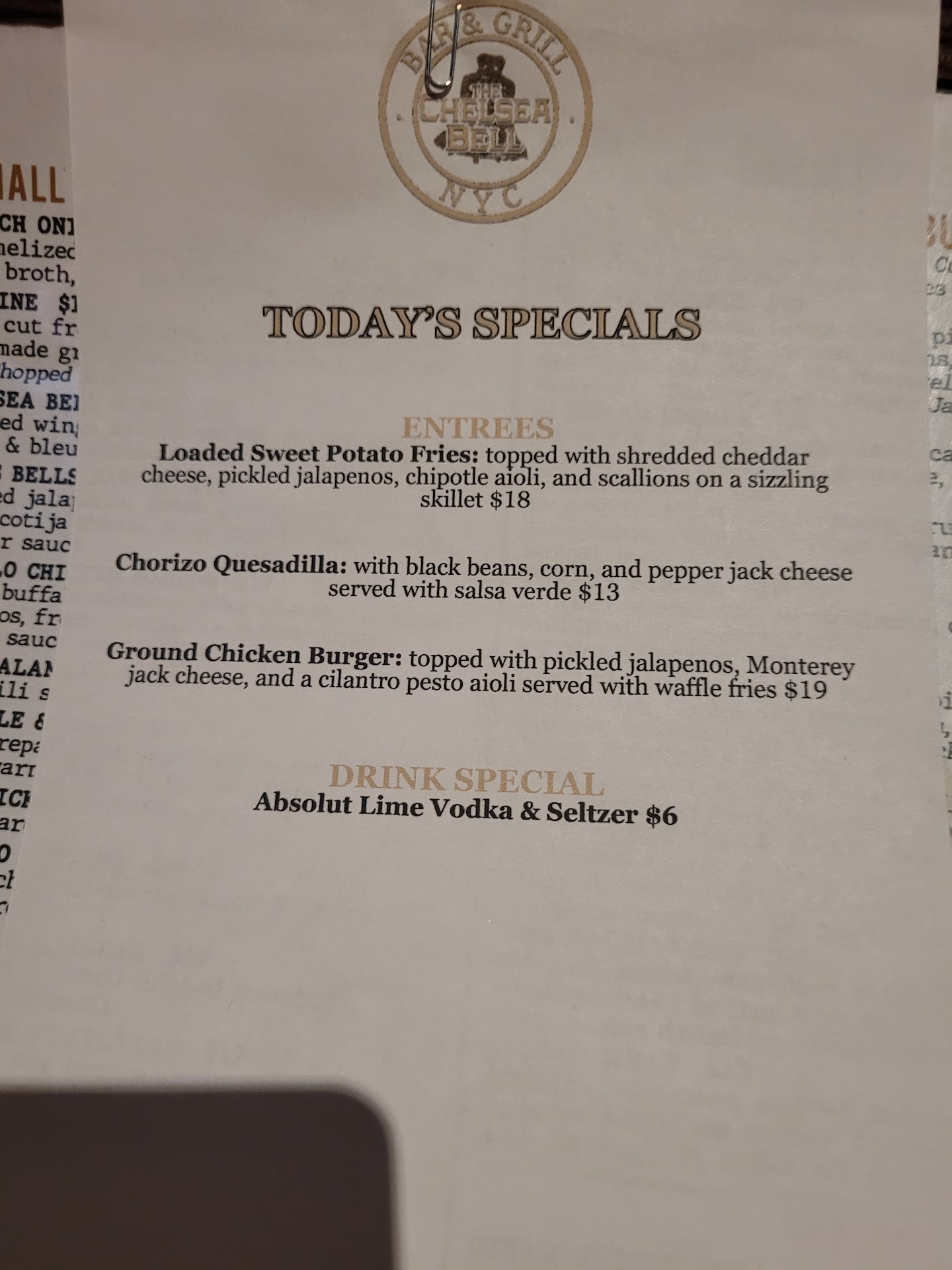 The food menu at Chelsea Bell doesn’t take a backseat either. It features classic American pub fare with some inventive twists. Options like gourmet burgers, wings with multiple sauce choices, and hearty salads mean that there is something for everyone. The portions are generous, ideal for sharing, and the quality of food is consistently good, providing a satisfying complement to the drinks.
