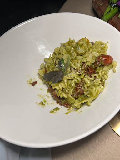 Read moreUpon opening the doors, you are greeted by the custom tile insignia giving notice that what you are about to experience is a little bit more than expected. The space is on point for whisking you away to Paris. Greeted immediately, we hardly had time to absorb the warmth of the bar to our right - glowing and humming with staffâs anticipation of treating their guests. The iron detail of the bannister, anchoring unfurling curved staircase calls you to the second floor dining space. Warm tones of aged brick, wood and dim warm lights made the otherwise cavernous space cozy. The music was a menagerie of contemporary US and French selections. My only wish is that they would have stuck with one or the other as the shifting felt jarring in the otherwise blissful moments. Cesar made our visit very special. He was attentive yet leaving us enough time to anticipate our next course. We began the meal with steak tartare - this including a quail egg, a good dose of Dijon and pepper. I would have only added a touch of capers to lend a bit more to the well composed plate. Next was the marrow bones which was the first time I have had them dressed in a fig demi gloss. The bones themselves were less full of marrow than I would have expected though the marrow was perfectly rendered. Dinner featured the creamed spinach and short rib cavatelli. These were nothing less than spectacular. The luscious cream was perfectly studded with fresh garlic and introduced to the fresh spinach with such a gentle touch that the two were intertwined without becoming an indiscernible paste. It was the most incredible creamed spinach I have ever tasted. I commented to Cesar how much I enjoyed it and he sought out the chefs technique so I could recreate it at home. The cavatelli was nothing short of indulgent with its braised richness almost buttery silk of the short rib, a slight sweetness from a bit of red wine used to bridge the savory profile to the hand rolled cavatelli acting as a soft vehicle and adding the necessary balance to the dish. Small dollops of fresh ricotta added the touch of cream but inventively the chef allowed me to customize my experience by varying the amount of cream I used in each bite. If I had more time I would return to see Cesar and explore this...