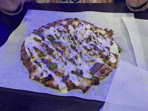 Food: Friggin’ delicious! We had the chicken over rice personal pizza, hamburger pizza, and chicken tikka cheesy roll. Personal Pizza is a great size to share with two (in my opinion) The chicken over rice pizza was incredible! My wife loved it & so did I! The cheeseburger pizza was also yummy. Chicken tikka cheesy roll was good but I chose the tikka & wasn’t the best combo but still good! Everything is made to order - which is nice. Fresh food is always good.