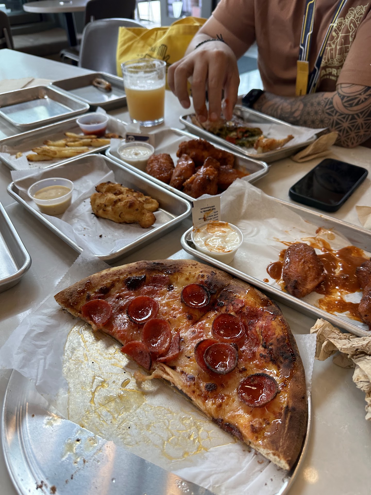 If you have been to their other location, it is similar at a larger scale. There are two floors with patio seating outside and on the rooftop. The first floor had picnic bench style seating. They also have merch to purchase at the to-go section. Great for groups of all sizes.