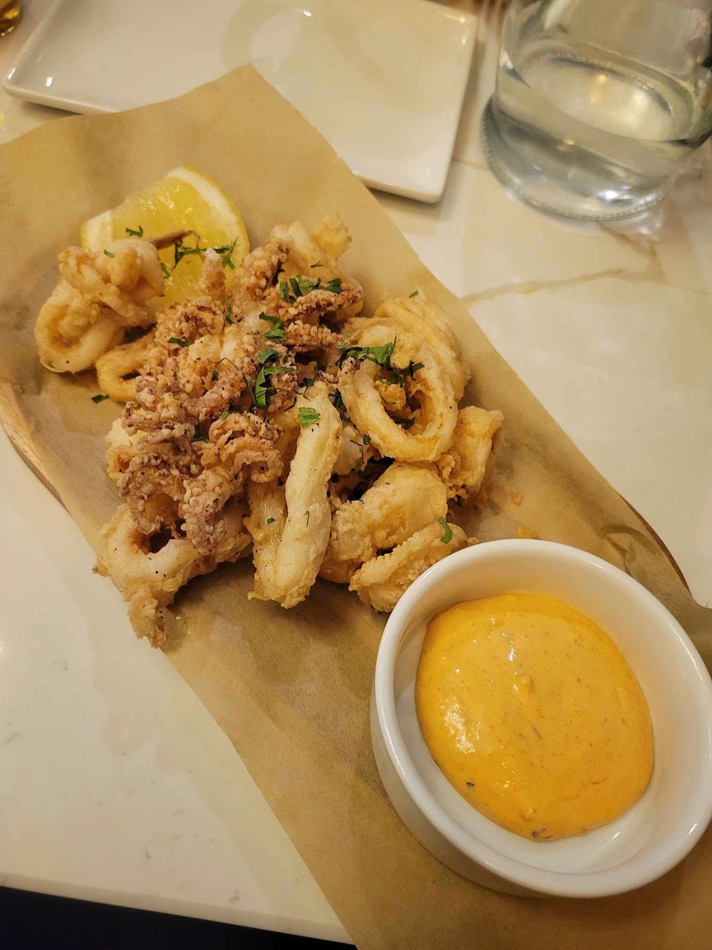 We ordered a feast: the shrimp appetizer was delicate and flavorful, the calamari perfectly crisp, and the lamb meatballs were rich, savory, and full of depth. The salmon entrée was cooked to perfection—flaky and buttery with a lovely citrus finish. The beef sliders were a fun, satisfying bite, and the Caesar salad was fresh and classic with just the right amount of anchovy kick.
