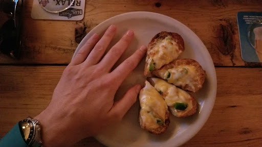 Read moreYikes. Came in hungry and asked for the biggest appetizer. Bartender responded I could get "whatever you want." I said yes, but which appetizer had a larger portion? He repeated "whatever you want." I suppose he didn't understand me or didn't want to take the time to. It was about 4pm so it wasn't busy at all. I ordered the potato skins for $8 and got one small potato chopped up into four parts. You could get the same amount of food for a $2 slice of pizza. It was disappointing not only due to the size, but moreso because he hadn't answered my question. I ended up ordering the chili too for $9, which was a significantly larger portion. I've visited this bar other times and received good service so I'm not giving it one star, but wow, I suppose I've learned to not eat at a restaurant where my server can't answer a question about the food. If I visit again I'll reconsider my rating, but this wasn't...