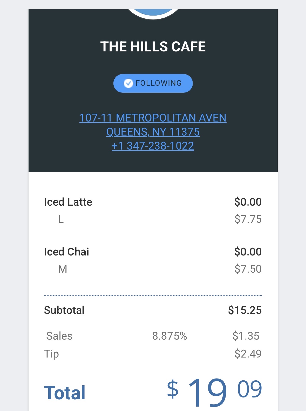 I ordered a large cold brew, a muffin, and a $3 cookie.