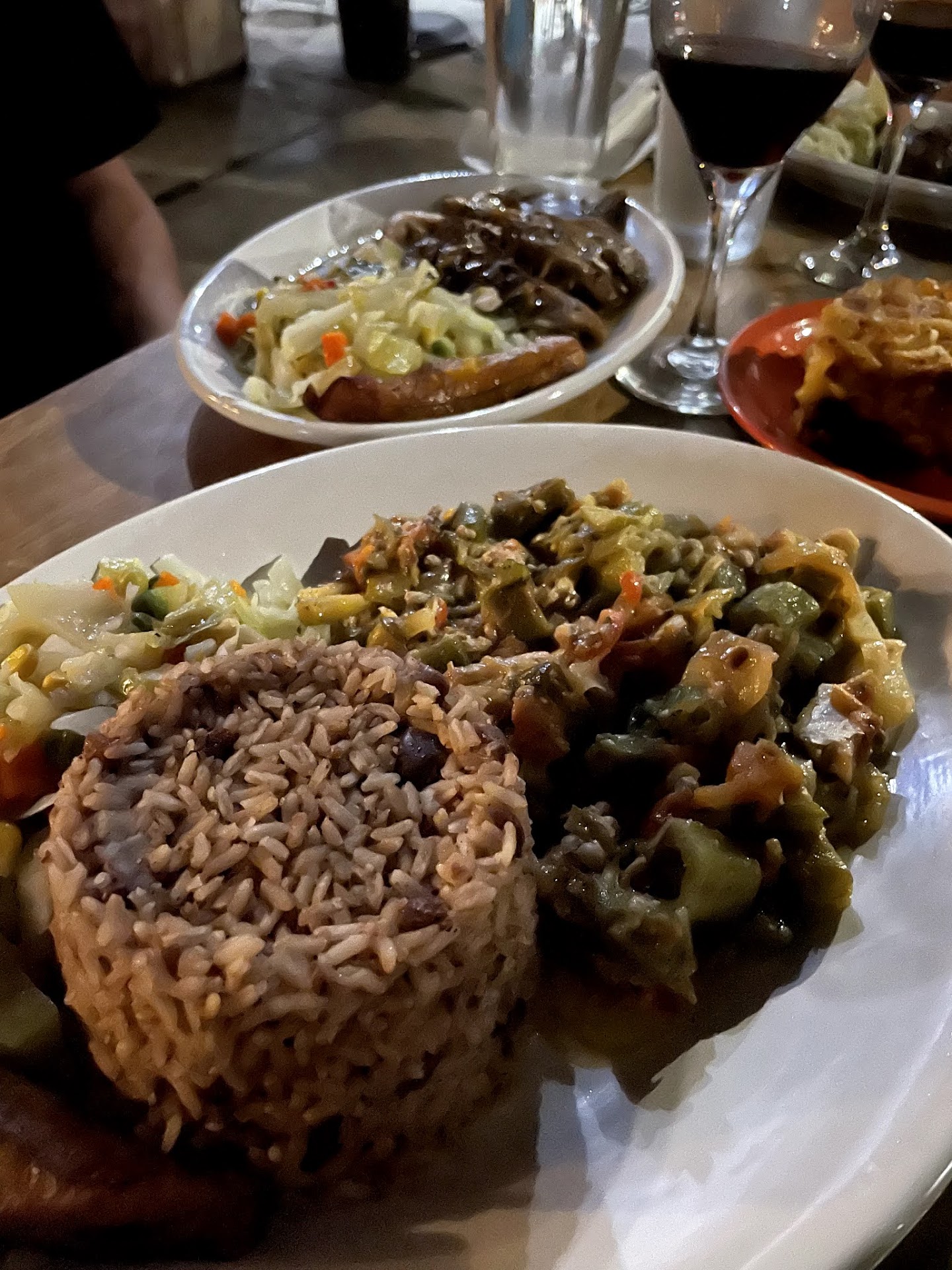 Now for the food, I highly recommend the jerk lamb / chicken or the curry chicken. Meat is literally fall off the bone tender and HUGE portions — we were literally cleaning the place of the jerk lamb, and it’s just spicy enough for you to feel the heat but still keep you coming back for more. The roti is BOMB though, and would definitely recommend getting this to compliment your meal and just help sop up the sauce. The plantains and steamed veggies included in each plate are also delicious :) However, if they offer you the Mac and cheese as an add-on, I would say to pass: it’s decent but not worth the price. Service could have been better while we were dining; we didn’t get any water refills or check-ins, and had to flag down a waiter to order and get the check. However, for their initial service + the treat of being able to drink your own wine with the meal + the portions and quality of the food, I am still more than happy to give this place five stars. I will definitely be back the next time I’m...
